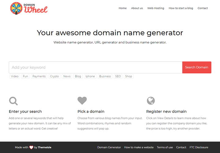 It is one of the simplest tools you will ever come across on the web. It works with the same trick, taking two keywords from your WordPress blog, and merging them, adding different characters with them, spelling them backwards, spelling them in fun way, adding phrases, and much more. It will also help you to create your domain, as your choice. Be it org, in, com, or whatever you may like, as long as it is available in the GoDaddy portal, as Panabee is backed up by GoDaddy in case of registering the portal.