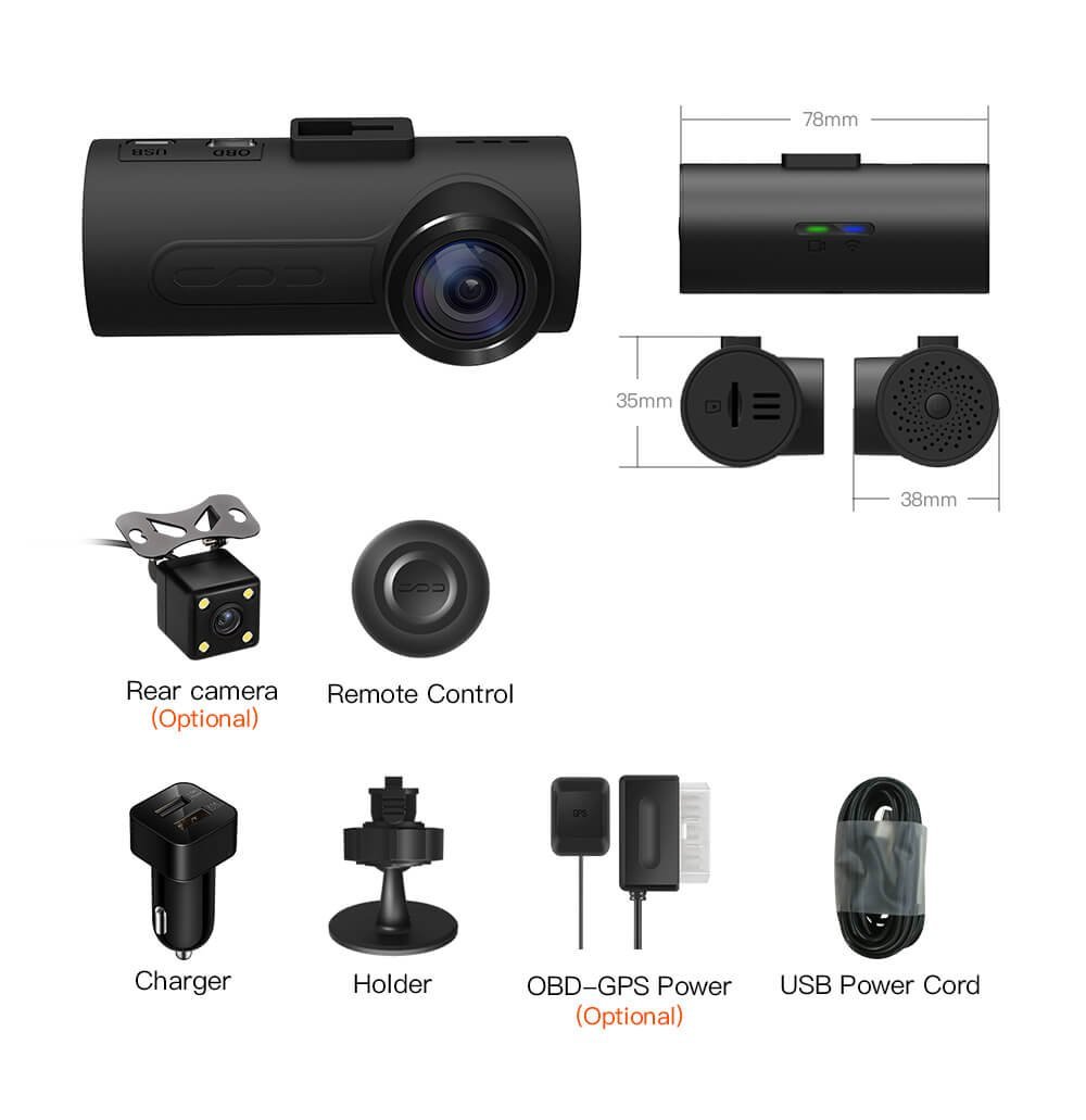 - 【Ultra Mini & 360° Rotatable Structure & Easy Mounting】Easily and securely mount to your windshield or dashboard in seconds with 3M Double-sided adhesive tap, includes a dual-port car charger to power the Dash Camera , remote control, and an additional USB cable.