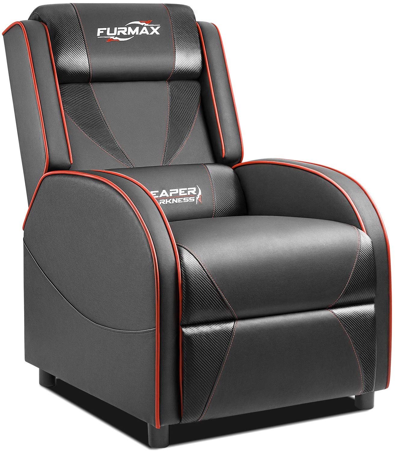 Another excellent gaming chair that also serves as a recliner is the Furmax Gaming Recliner Chair. This particular chair comes with all the bells and whistles as well as boasts a very fast 10 minute assembly time. This particular recliner only comes in two different colors and unlike most gaming chairs, there is no separate head/neck or lumbar support pillows, but instead, they are built into the chair itself. This chair will recline as far as 180 degrees to provide you with maximum reclining comfort as well as a very smooth leather skin design.