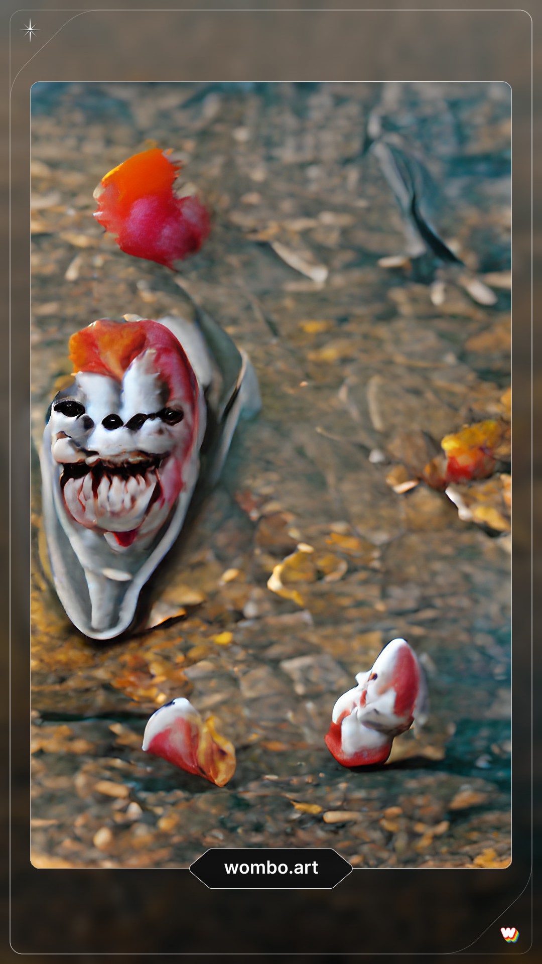 This piece ended up extremely abstract yet quite unsettling to look at, almost as if the beady, arachnid eyes are staring back at you. It’s as if the AI took the clown portion, the spider portrayed towards the end of the movie, and fused the two, with a cracked and worn street as its backdrop.