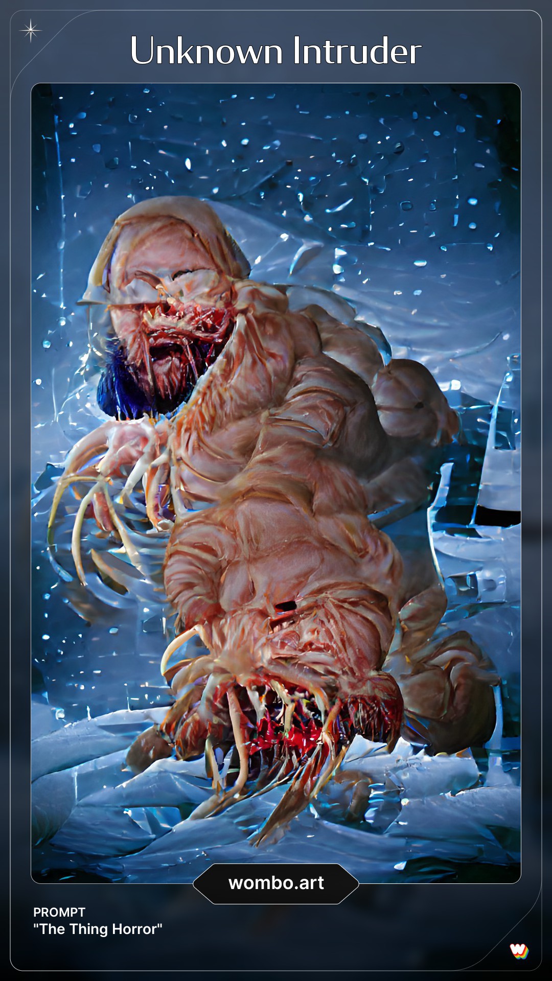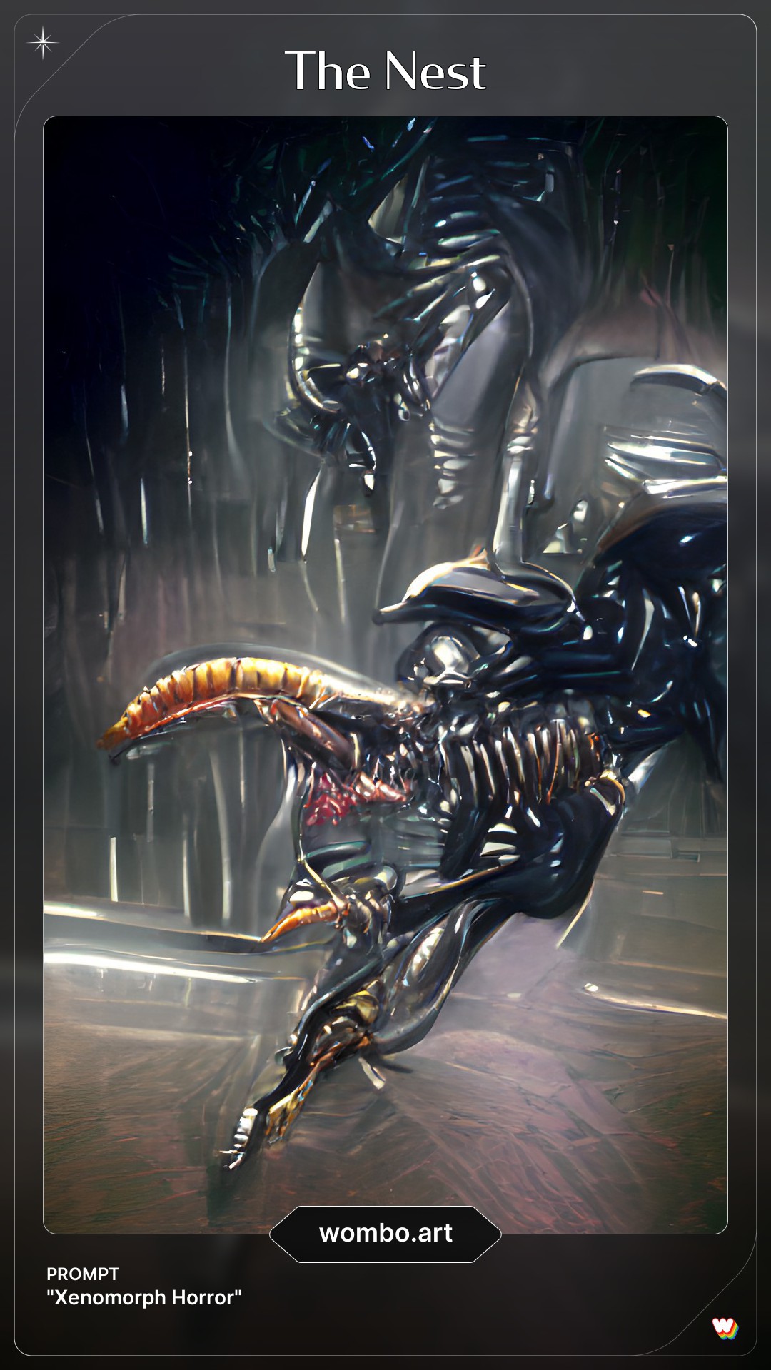 This is reminiscent of some of H. R. Giger’s more abstract works, and really captures the essence of a xenomorph despite its lack of proper form. The pearlescent, insect-like outer shell, sharp angles which communicate hostility of an alien species, all in all, fantastic job from Wombo.