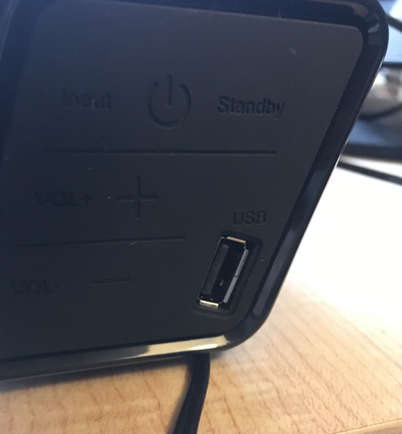One great feature of the ABOX sound bar is that it’s made out of metal. Ones I’ve had in the past had a mesh fabric surrounding the speakers, which is a nightmare if they get a scratch in them because that’s almost impossible to fix. The sound bar has four speakers inside of it, which gives it a great surround sound. It looks like it’s high-quality and will hold up for a long time. There’s an easy button for you to switch between all of the different outputs, depending on what you’re using it for in the moment.