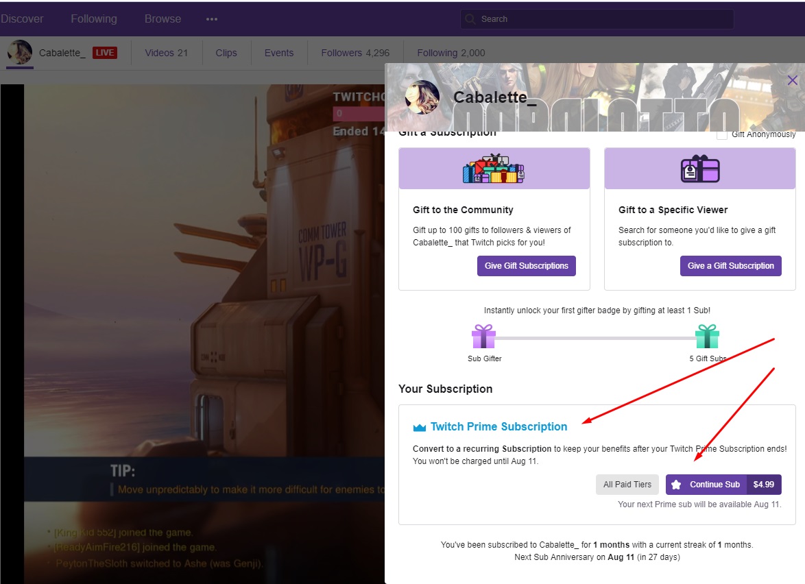 If you are already an Amazon Prime member you may not be aware that you already now have access to Twitch Prime since Twitch is owned by Amazon.  Twitch Prime offers an array of other benefits for Amazon Prime members who happen to be gamers or simply want to support their favorite gamers on Twitch without coming out of pocket to subscribe to them.  With Twitch Prime you get access to free games, unlocks and skins for various games and more.  With your Twitch Prime linked to your Amazon prime you can now also give 1 free monthly sub to another Twitch Streamer which is basically like donating $4.99 to a Twitch streamer of your choice without paying anything, you are just using your free Twitch Prime sub that comes with Amazon Prime.