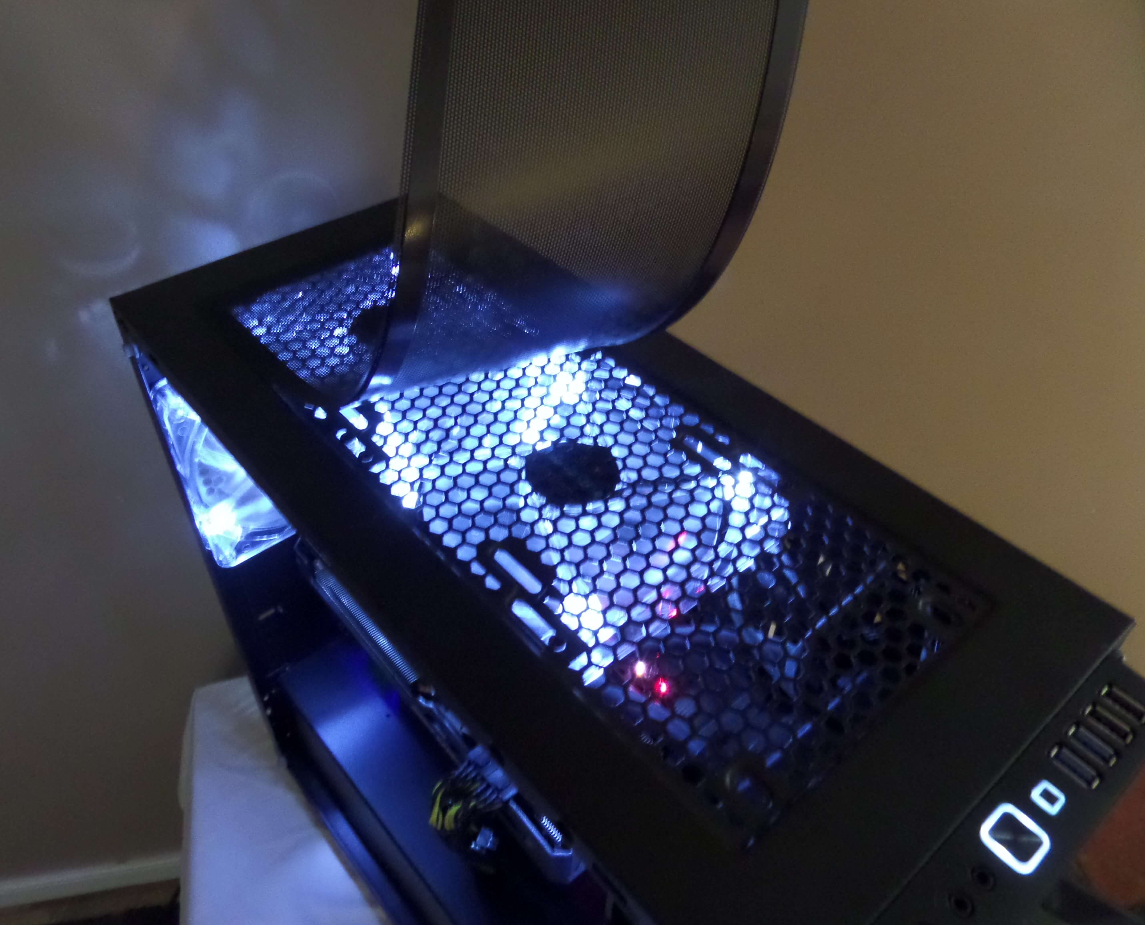 Coming around the top, you can see I removed the top filter, so you can see the fans.