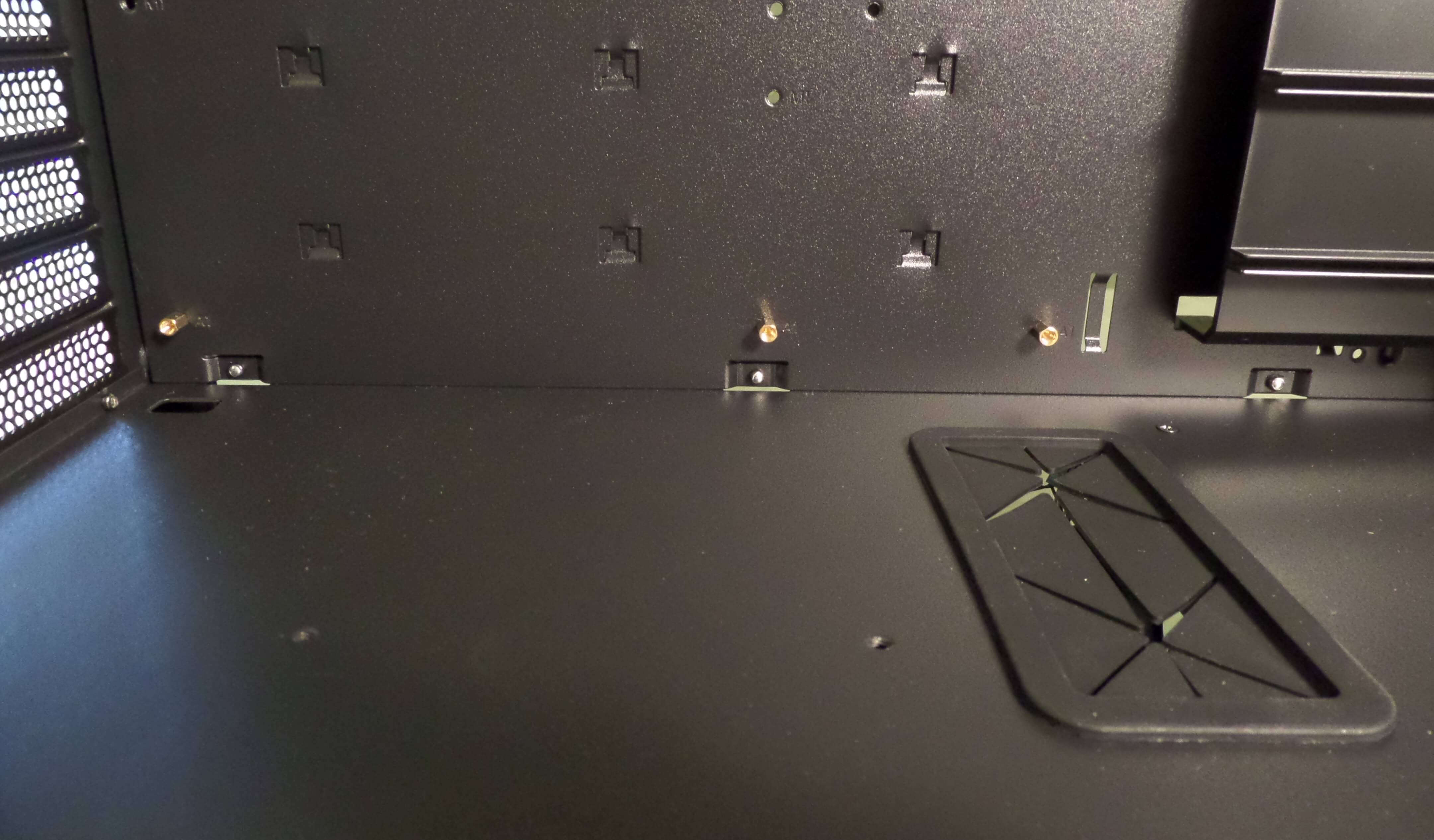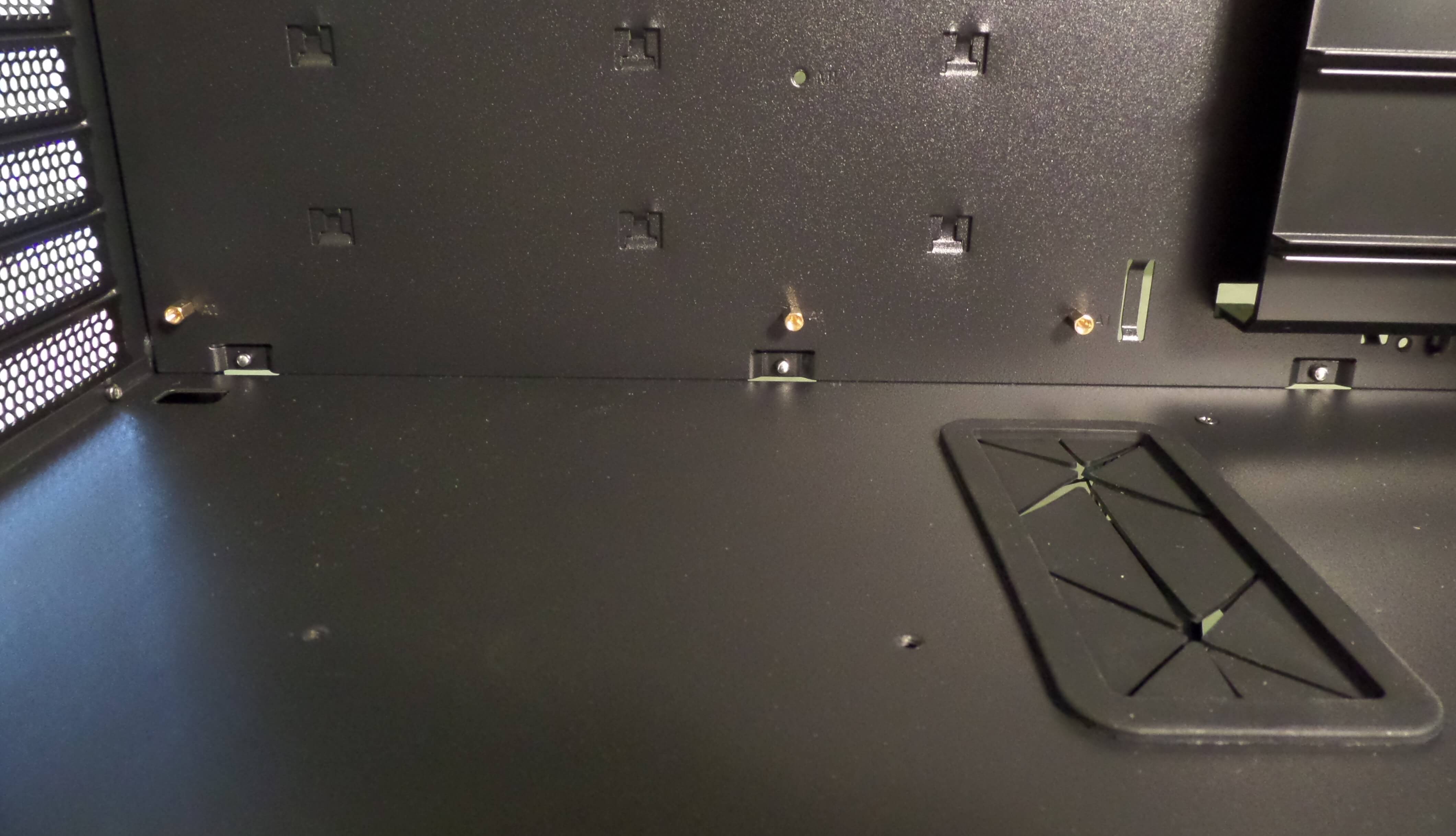 Right above where you would sit the power supply, we find the 3 hidden compartments for 2.5in drives.  This is a nice tucked away spot to hide some SSD’s or 2.5” mechanical hard drives.