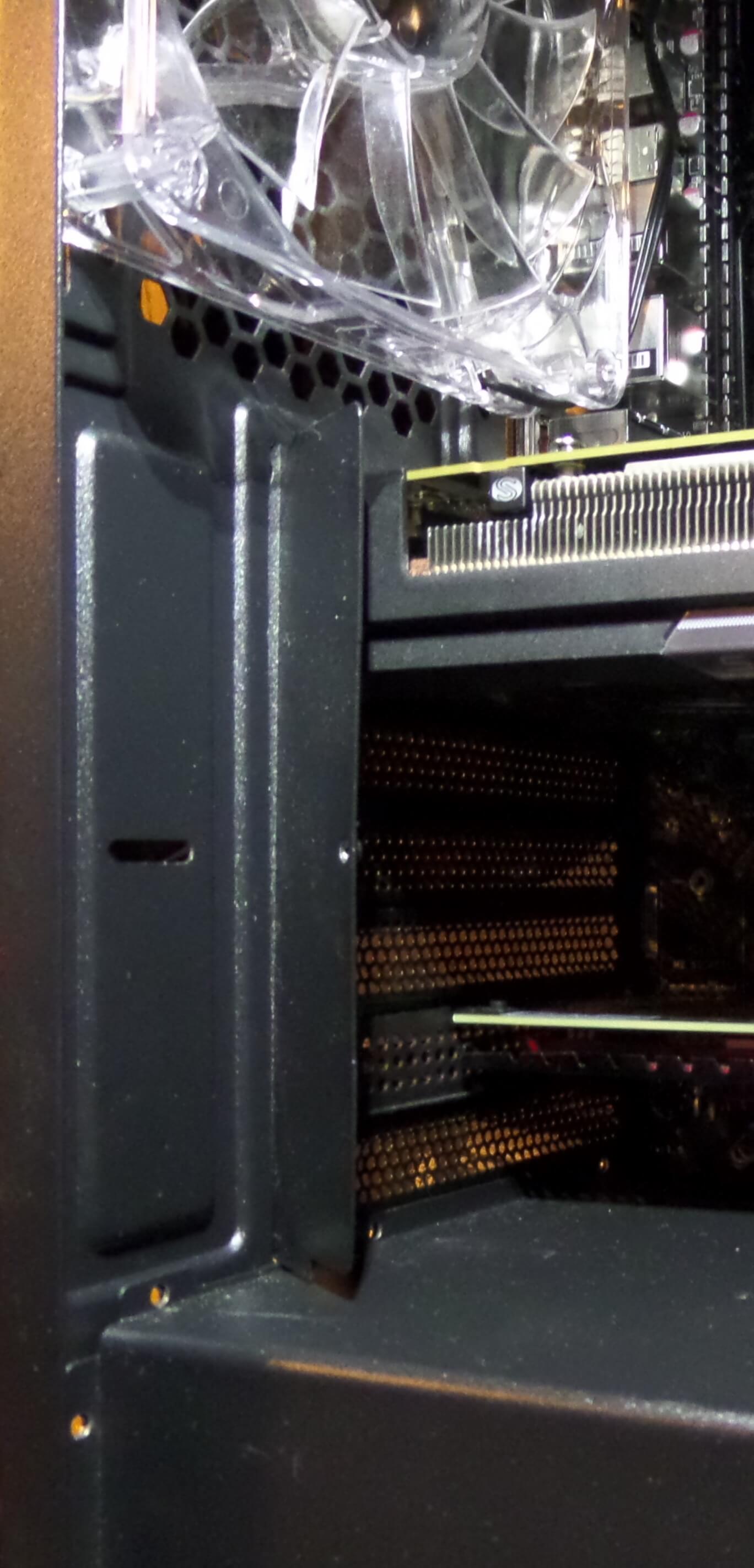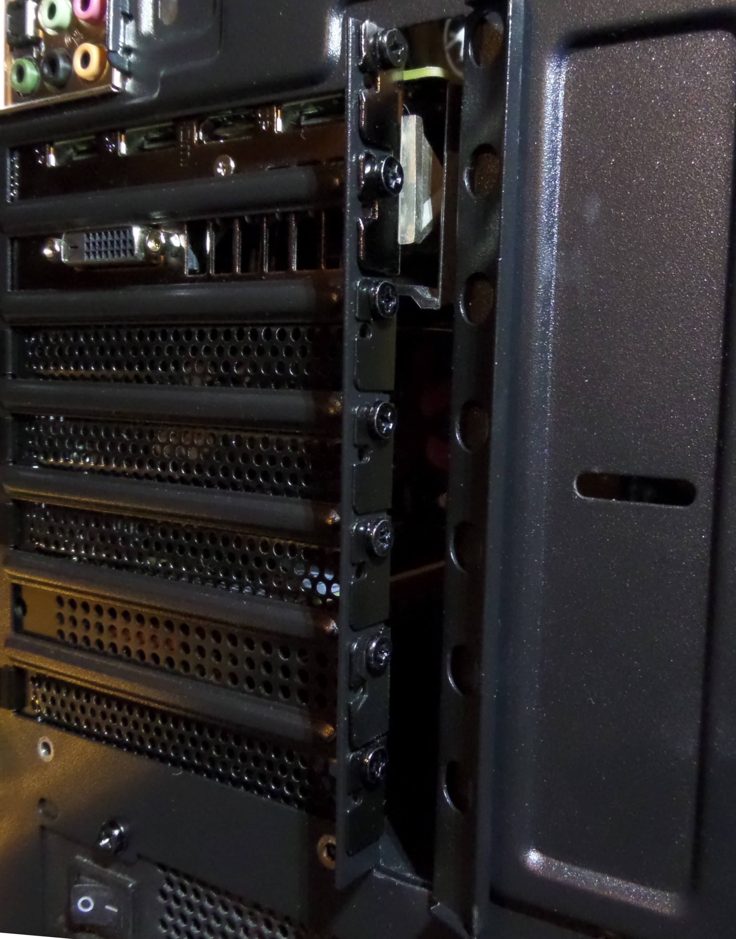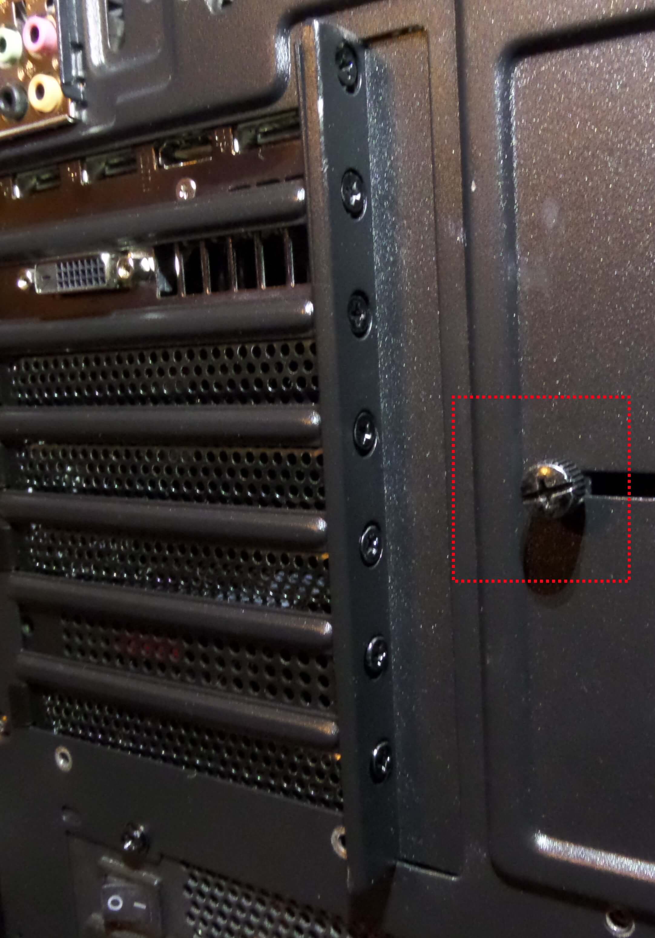 Now if you remove the thumb screw that holds it in place, you can slide the lip over exposing the actual PCI-E slot covers.