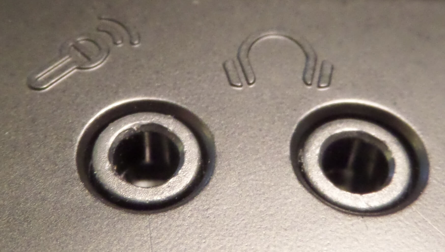 To the right of the slider we find the 2 x 3.5mm headphone and microphone jacks.