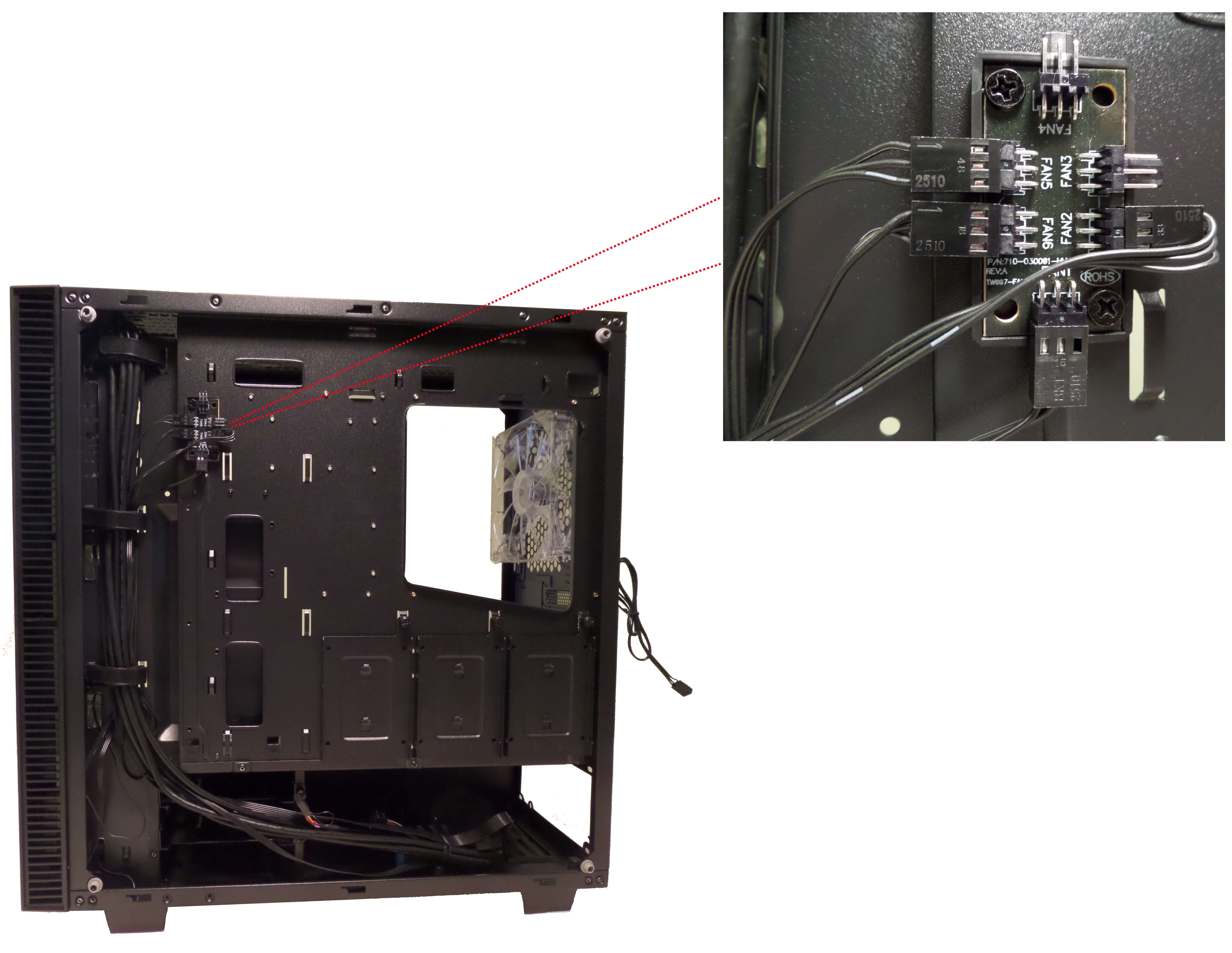 Moving up to the top left hand corner of the case, we find the fan controller.