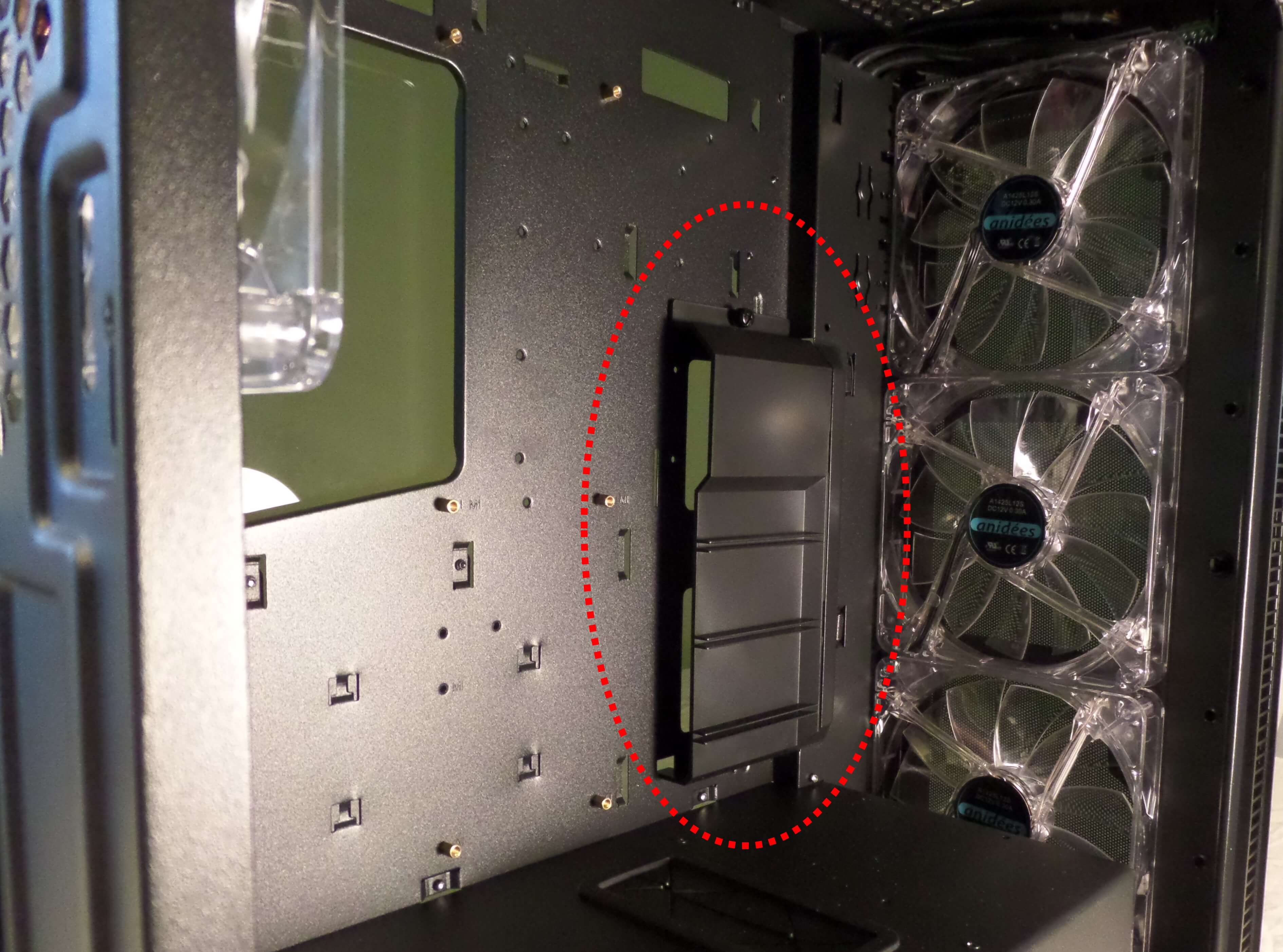 A little to the left and in the same compartment of the power supply, we find where we can house 3 x 3.5in drives.
