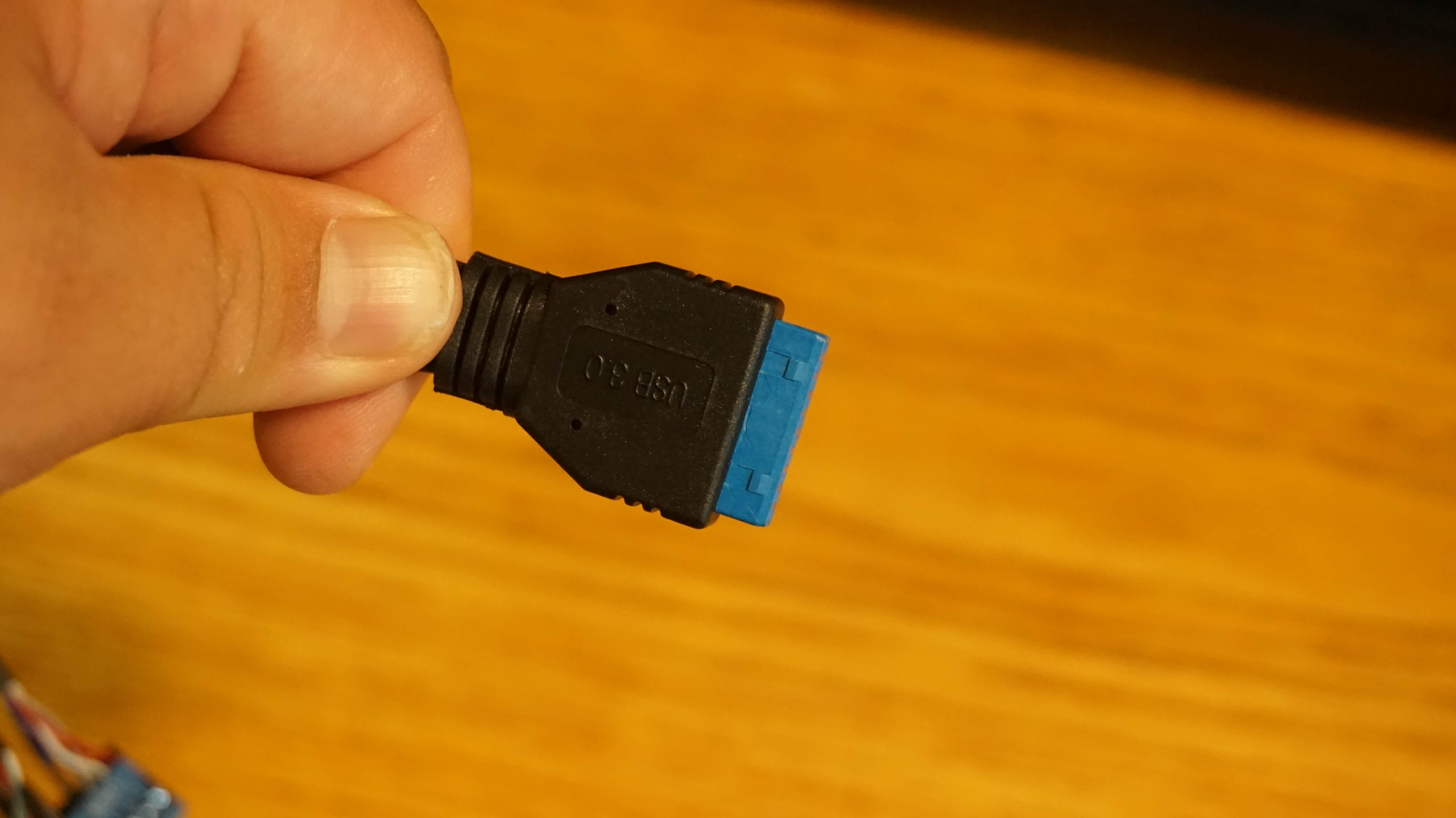 The header has the HD audio plug, 3.0 USB header, and your standard  motherboard header wires. Like USB 2.0 HD LED reset and power.