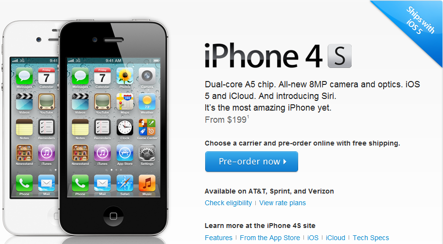 Apple iPhone 4S Available for Pre-Order Ships from October 14