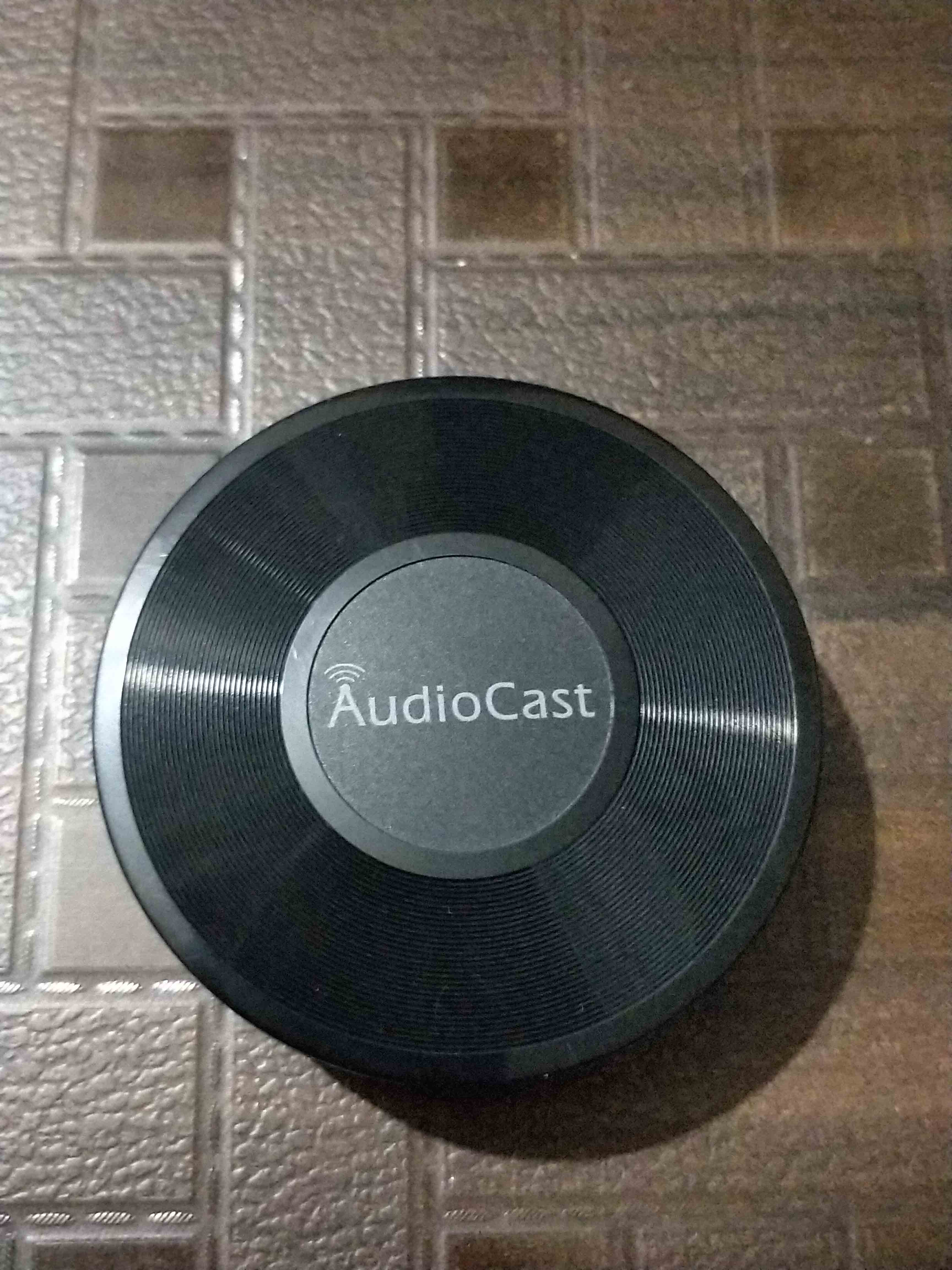 The top of the AudioCast looks like a Vinyl record. The rest of the body is made of plastic.