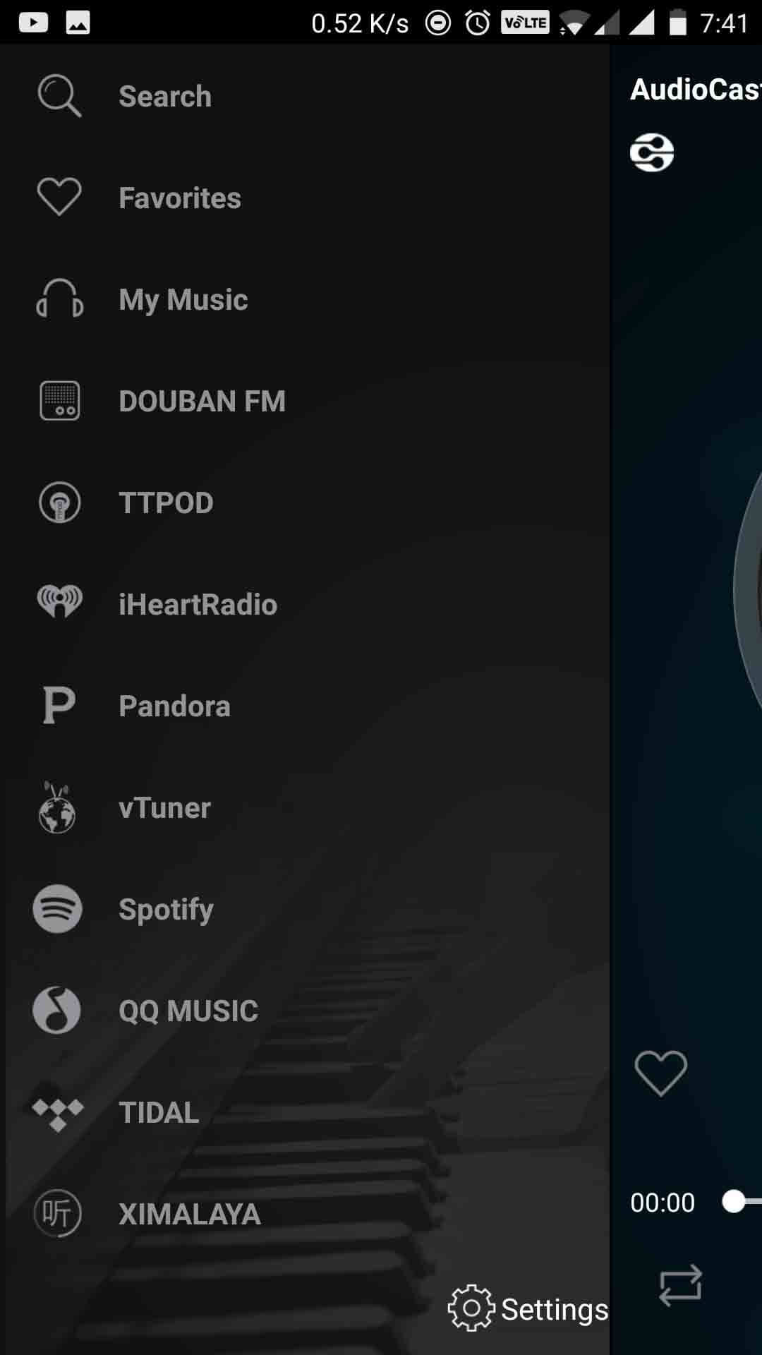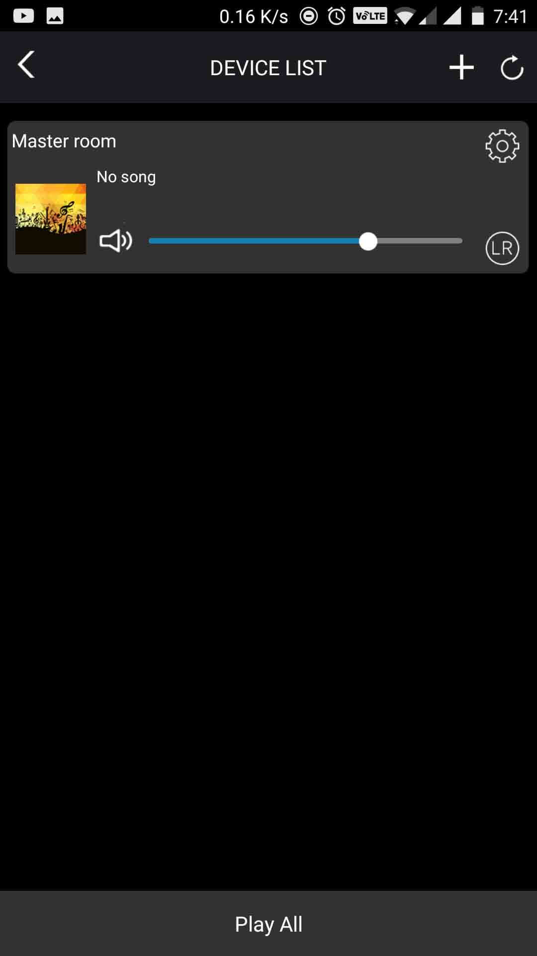 The app is very user-friendly and easy to use. The first screen that you’ll see after the setup is the device list. Here you can manage your AudioCast devices if you have more than 1. Clicking on the top left button or on my “Master Room” AudioCast will show a slider from where you can choose the streaming service that you want to play your songs from.