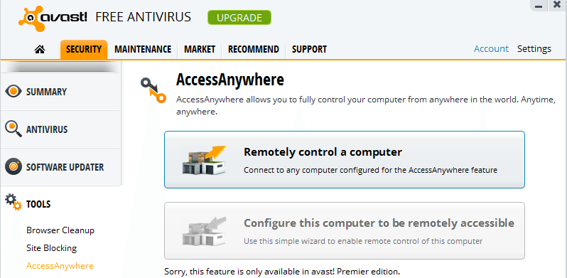 - Access Anywhere – It’s basically same as the Remote Access feature of Windows, and the free version only allows access to other PCs, but not to your PC.