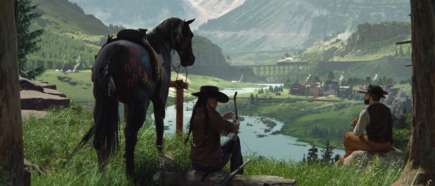 Not only am I curious about the gameplay of Bantam West, but also I am extremely excited about the artworks of this game. From the first glance at it, the audience can easily recognize the Wild West theme. Especially with so many Easter eggs from the cover box: a lone cowboy is relaxing under the shade. The cowboy must have been traveling for a long distance, as well as their company – the brown horse. Intentionally or not, this well emphasizes the main characteristic of this game: open-world. It is amazing that the spirit of the game is in the artwork.