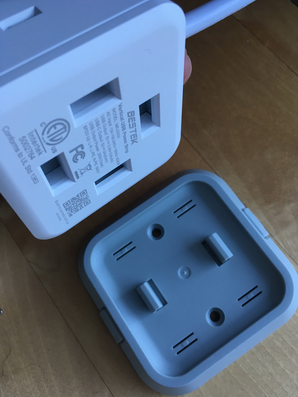 The bottom of the BESTEK cube power strip comes off so you can mount it anywhere you need to. There are screws and adhesives that come with the power strip so you can attach it anywhere. This can be particularly helpful if you need your outlets in a more accessible place without having to reach on the floor or behind your furniture to plug something in.