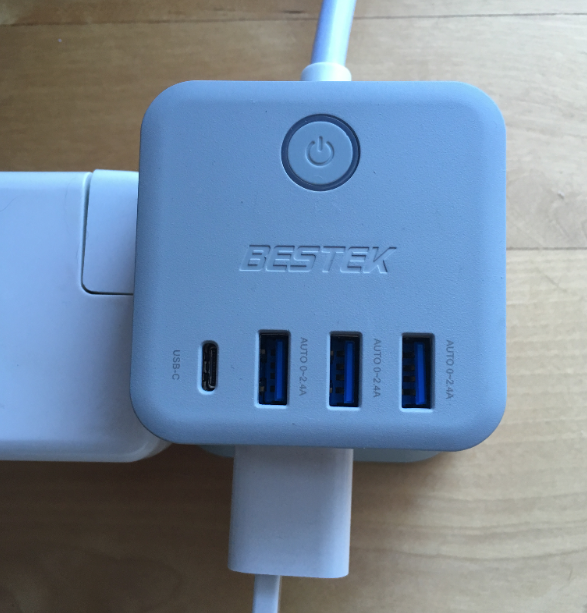 Each of the outlets on this power strip is facing different directions, which can help save room for your devices. Most of us have tried to use crowded outlets only to realize most chargers don’t fit well together, especially big, bulky ones like laptop chargers. There are three outlets, three USB charging ports, and one USB-C port. I’ve had multiple things plugged into each of the outlets and haven’t run into a problem yet with charging speeds slowing down or it being overloaded.. To turn on the USB and USB-C port, you simply push the button on the top to turn them on.