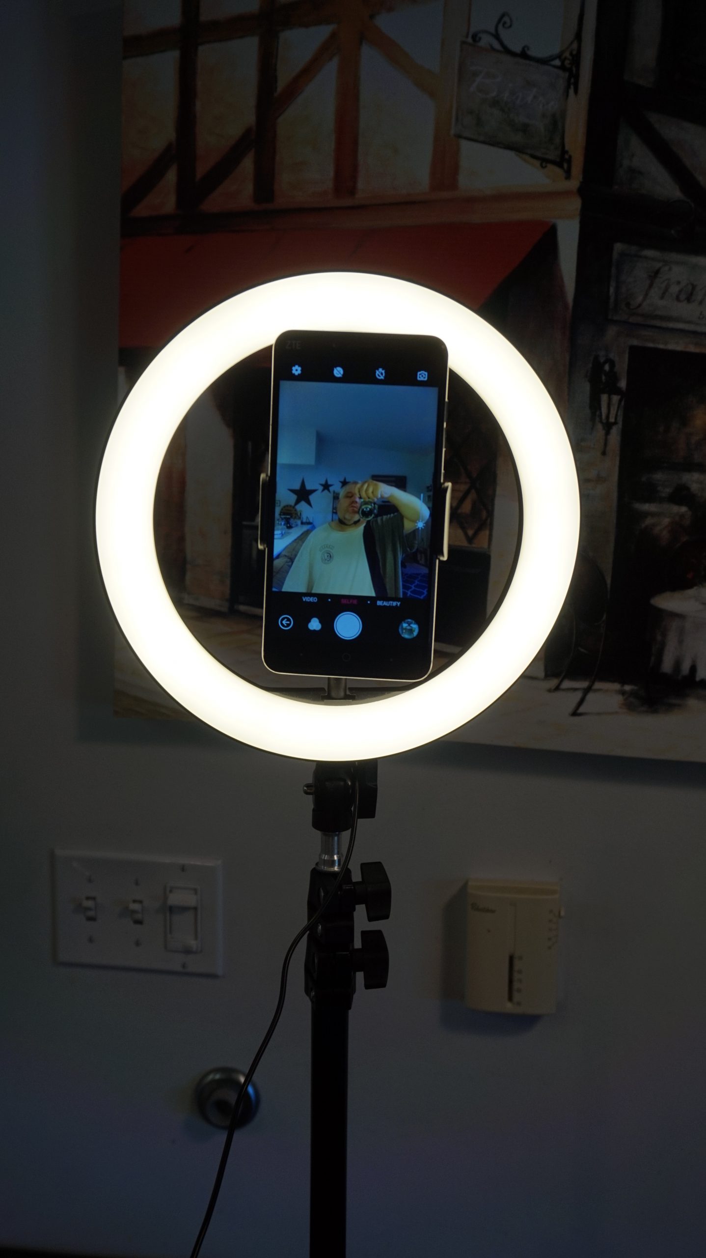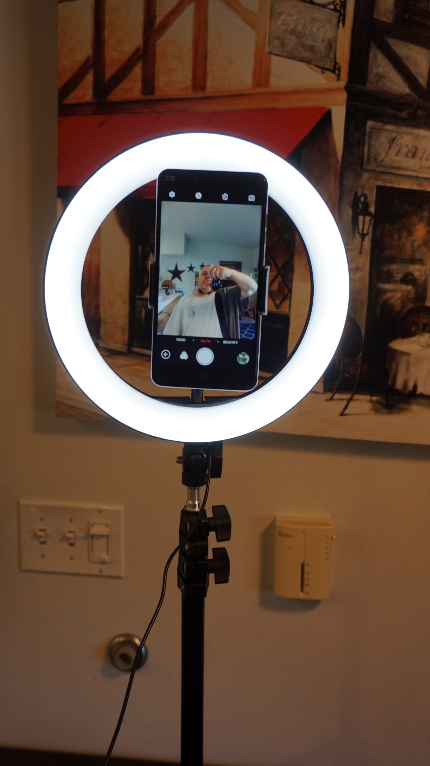 The BlitzWolf ring light itself is 10.2 inches round and has 3 different color tones. The color tones are warm, natural, and cold. Each color tones can range from temperature 3000K-5500K. Each lighting mode has 11 adjustable brightness levels to choose from. They claim each ring light has 126 bulbs. I did not take it apart to make sure this claim was accurate as I didn’t want to damage or destroy this ring light while reviewing it.
