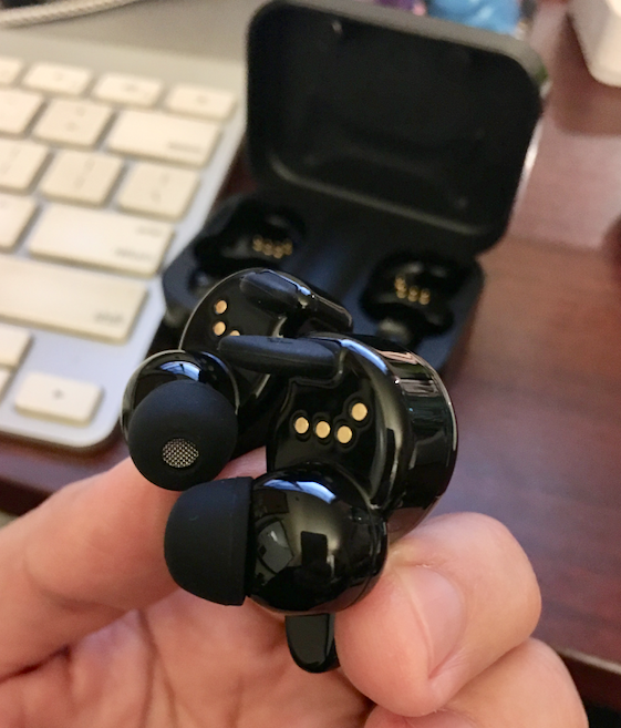 Fully charging the Blitzwolf headphones and the packaging didn’t take long at all. Using Bluetooth 5.0, it can stay connected up to 33 ft. so you can walk around without losing connection. The battery lasts up to 3 hours on a single charge. Then, you simply need to plug it into the charging case and it will recharge it on the go. The charging case itself lasts up to 12 hours, giving you access to your headphones all day.