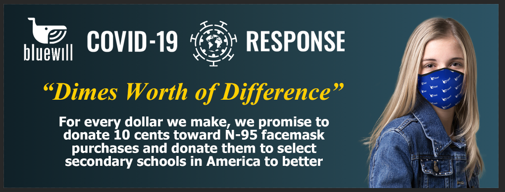 Bluewill also has their new Dimes Worth a Difference campaign where for every dollar they make they will donate 10 cents toward N-95 masks to select secondary schools in America so that we can help keep children protected from the spread of COVID while helping ensure they still can thrive in an in-person learning environment.