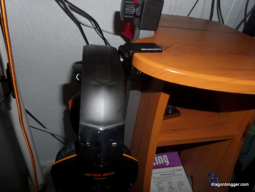 A pretty simple product overall, you need a hanger for your gaming headset or headphones and don’t want to stick a hook on the wall. The Hengja Headphone Hanger lets you mount a clamp off the side, front or back of your desk and give you a place to hang your headset.