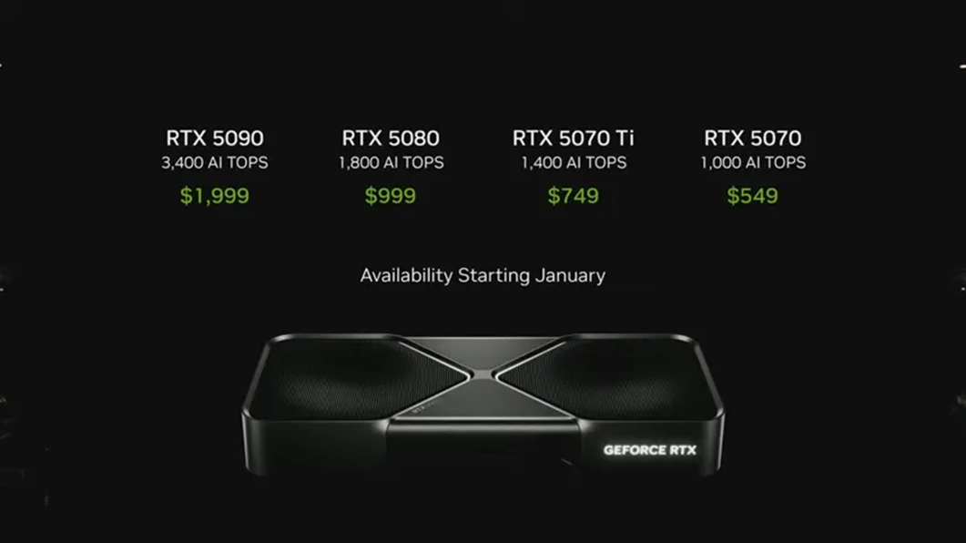 Nvidia’s announcement is definitely the wildest of the night. The new RTX 50 series graphics cards will be available at the end of January. They are the RTX 5090 ($1,999), RTX 4080 ($999), RTX 4070 Ti ($749), and the RTX 5070 ($549).