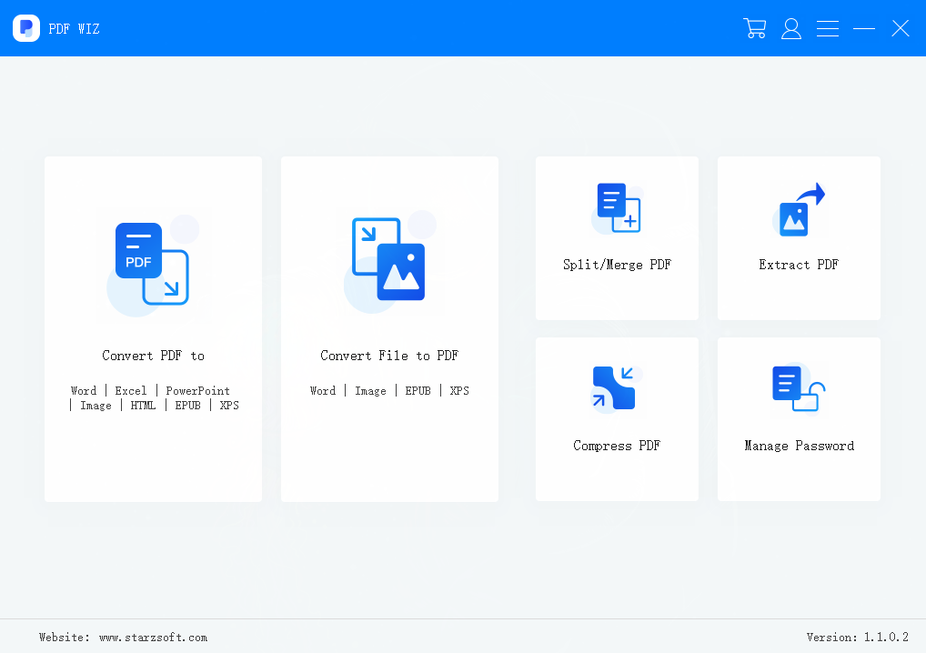 - Along with just converting PDF files, PDF Wiz also has other features such as splitting and merging PDFs, compressing the PDF file size, extraction of pages and images from a PDF and managing passwords.