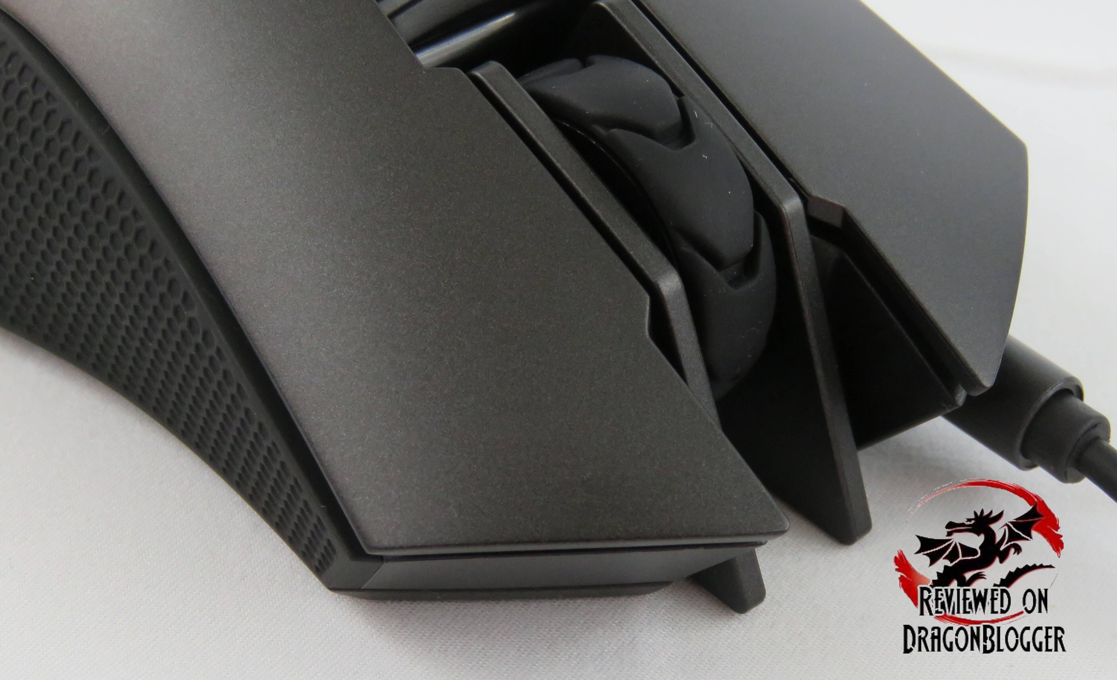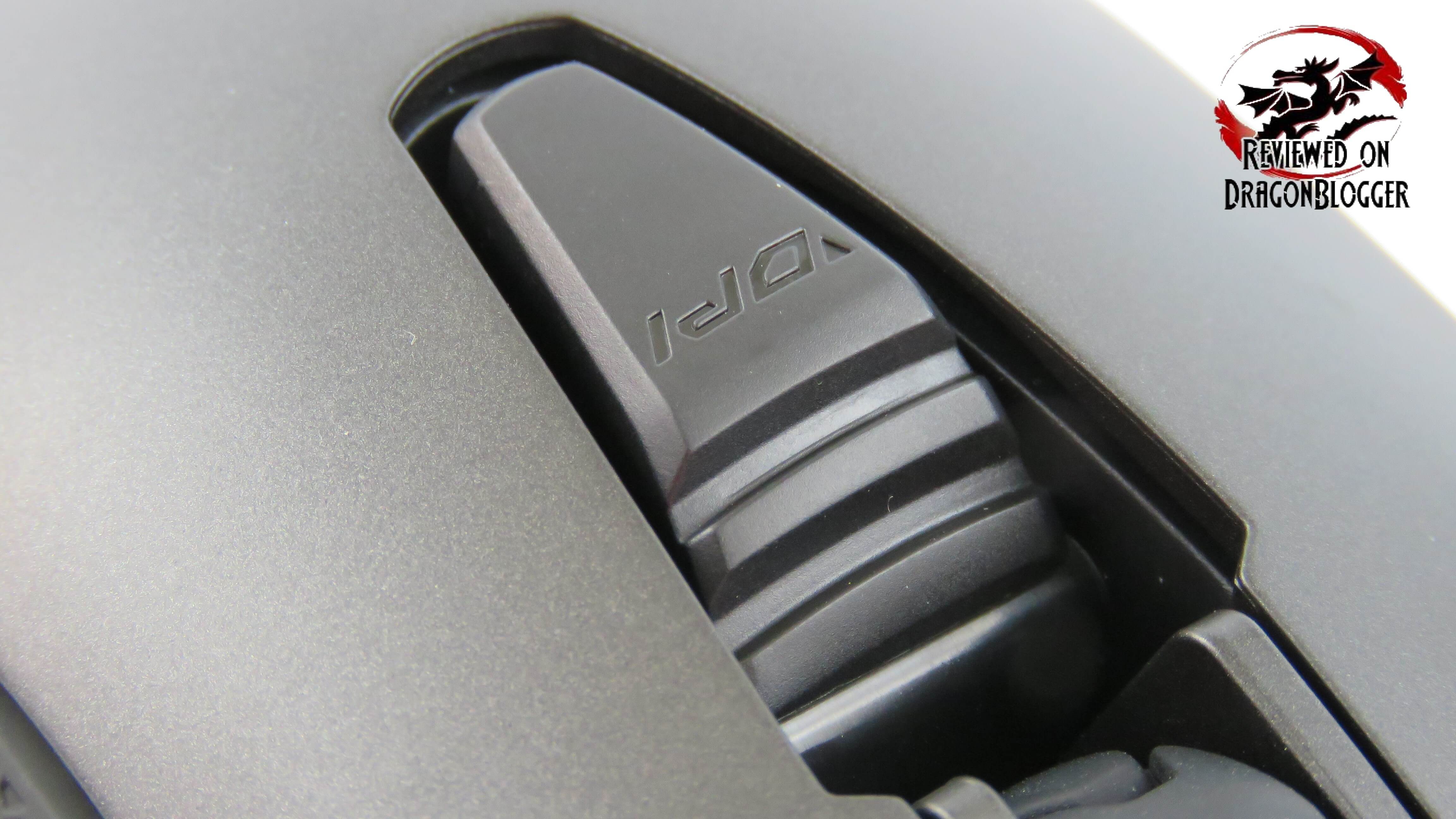 Behind the gaming grade scroll wheel, we find the DPI trigger. The DPI trigger allows you to cycle through the pre-defined DPI’s, though you can also change those DPI settings through the UIX software. We will go through the UIX software shortly.