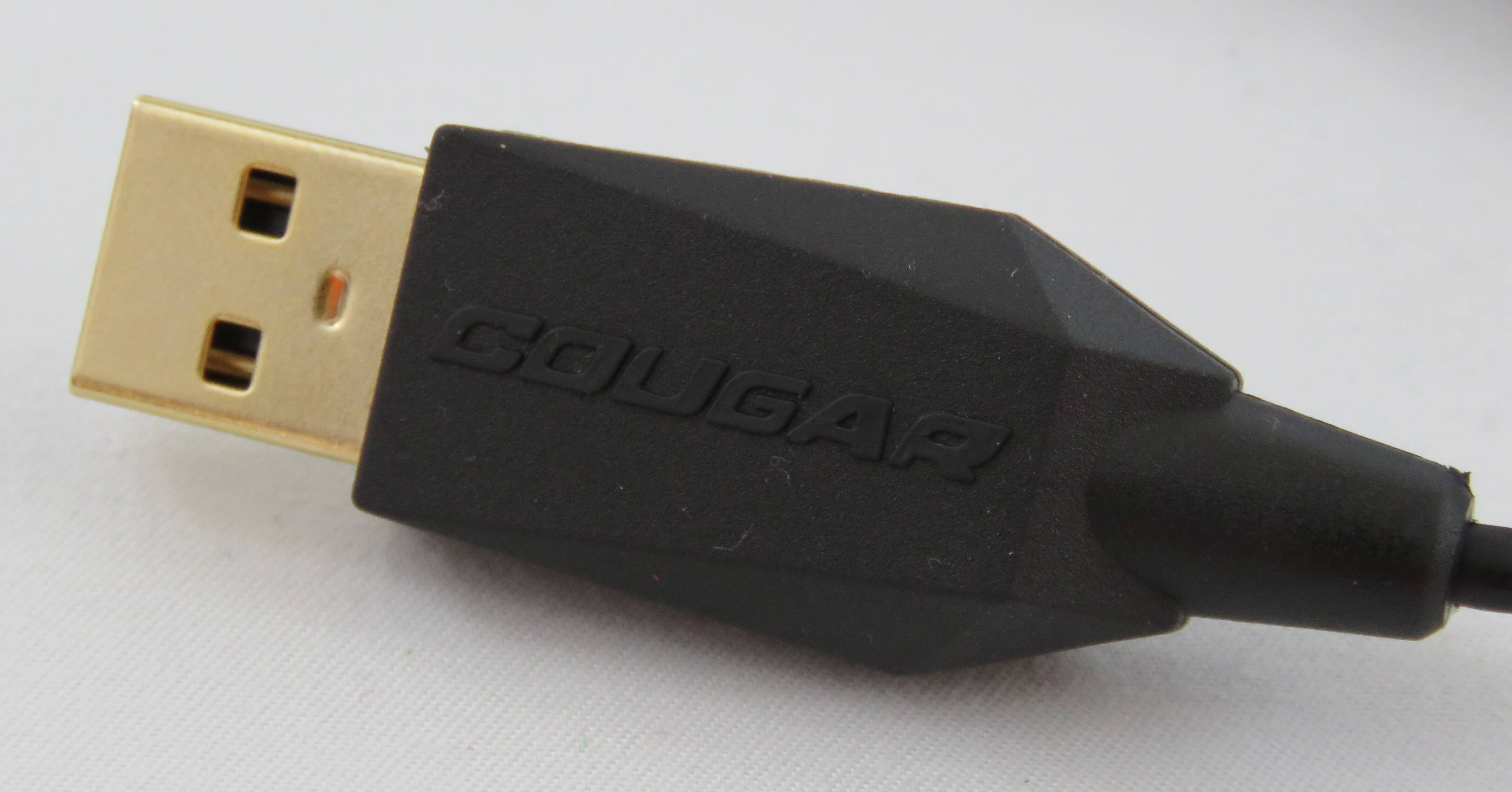 Then at the end of that very long cable, we have the gold-plated USB plug. The connector is backed by the standard type cover but branded Cougar.