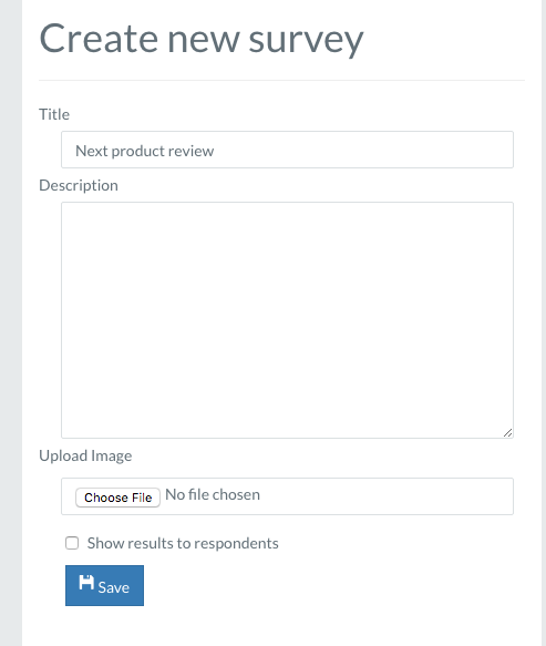 Once you hit to start a survey, you simply create a title, description, image, and then you have the option of showing the results to the people who answer your survey.