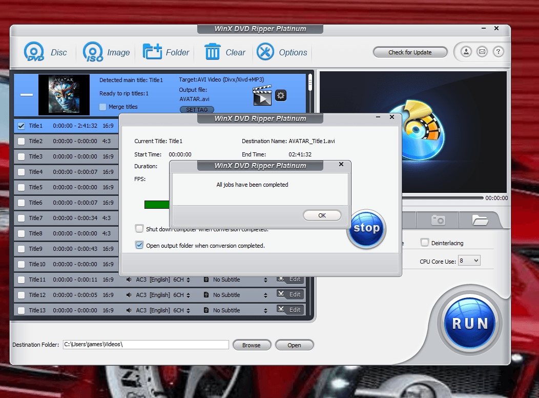 Then you press ok and the ripping and encryption breaking begins. Once that is done a screen pop up like in this next picture saying all jobs are done will display. You then press ok and move on to the next DVD.