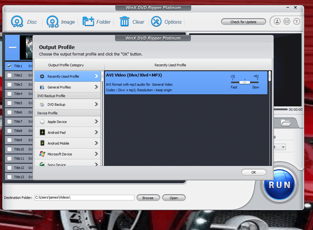 Then you click Disc and insert your dvd and press run. Once that is done you get a screen like this next picture.
