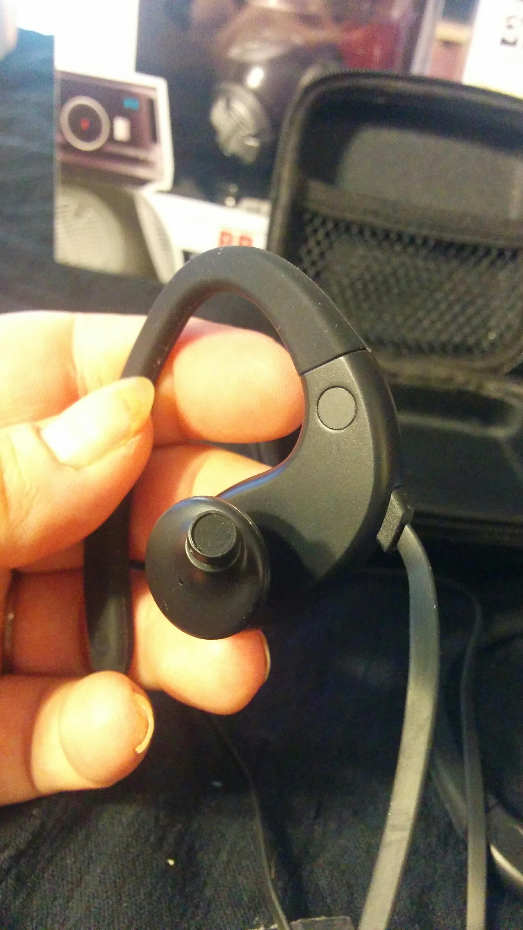 Holding them in my hand I am starting to get a bit nervous as these seem to be really big. There is no changing the position of anything as these are a solid piece. The bottom section with the speaker is a hard plastic and the hook is a solid rubber piece that is soft.
