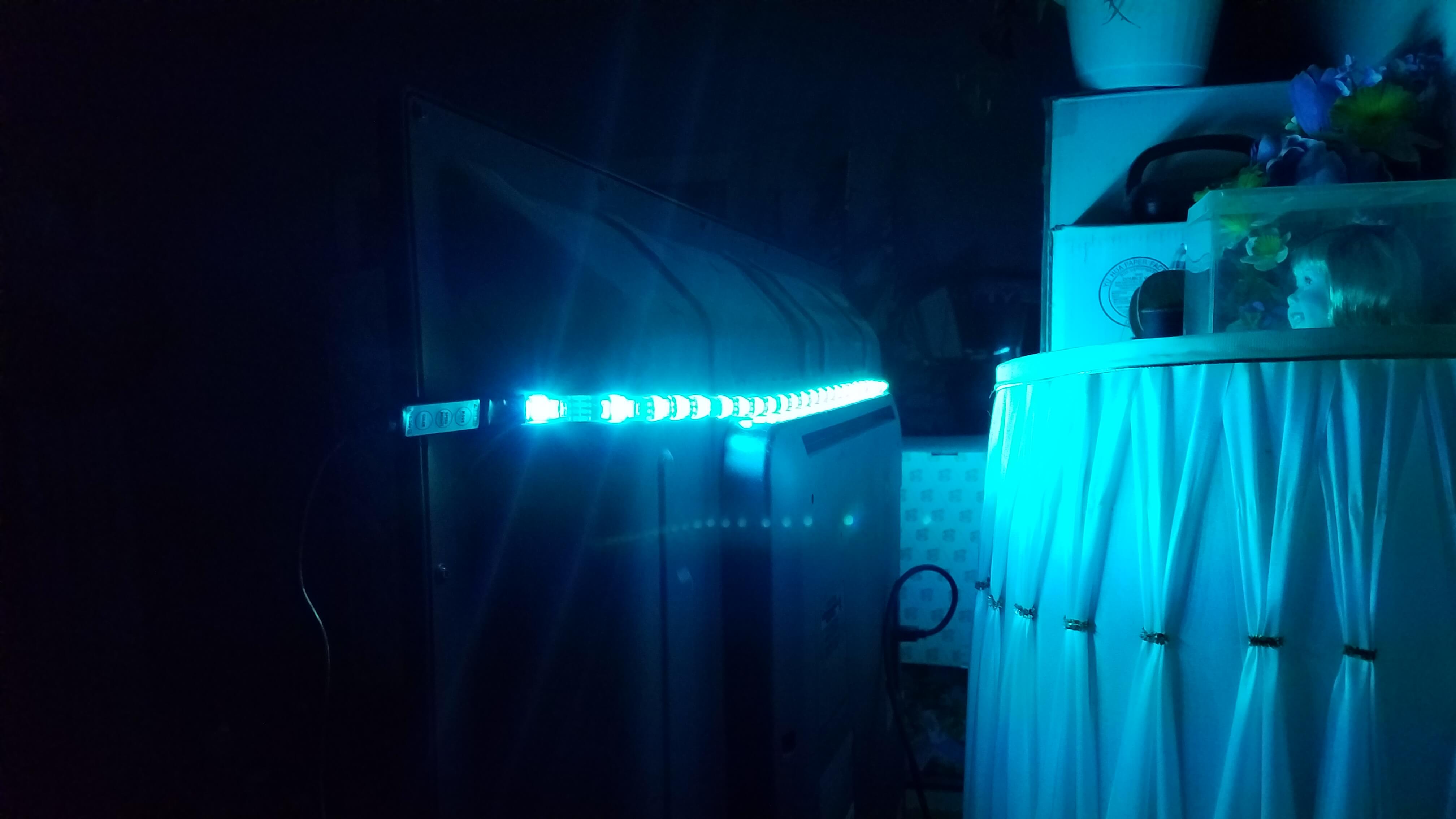 It has a fairly simple installation. The back of it has a sticky application that allows you to apply it to virtually any surface. I would just make sure to properly clean the surface first. It doesn’t come with much. Upon opening the box I pulled out the LED strip and a little user manual on how to install and the different modes and colors it has available. There is a small remote for it but, unfortunately, it is attached to the strip so you’ll have to get up and play with it instead of being able to change it from further away. There are a total of 20 dynamic modes and 20 different colors. The modes include a a seven color fade, gradual fades of single or multiple colors, different variations of flashes, a couple blasting shots and the auto cycle. I’m not going to list all of the colors, but let’s just say it, more than likely, has the color or colors you’ll find appealing.
