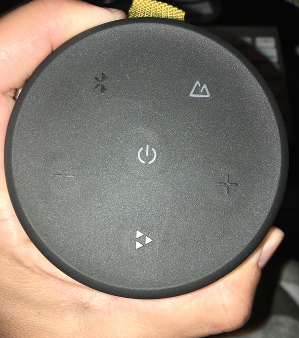 Right out of the box, it’s pretty easy to set up. You simply charge it in a USB port and wait for the power button on the top go from red to blue. You have the option to connect it through Bluetooth or through a 3.5mm aux cord. It sadly didn’t come with its own 3.5mm aux cord, which would have been helpful, but I do have some around. That’s something you’ll want to keep in mind if you buy one, though.