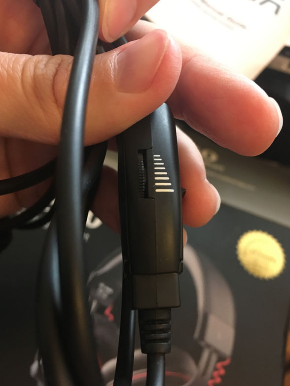 The cord is long – about 6′ and is made out of rubber. It’s smooth so I didn’t notice it catching on any clothing when I used it. The remote is also light and I didn’t notice it pulling on my head at all. There’s an on/off switch for the microphone along with a volume adjustment knob on the side for easy access.