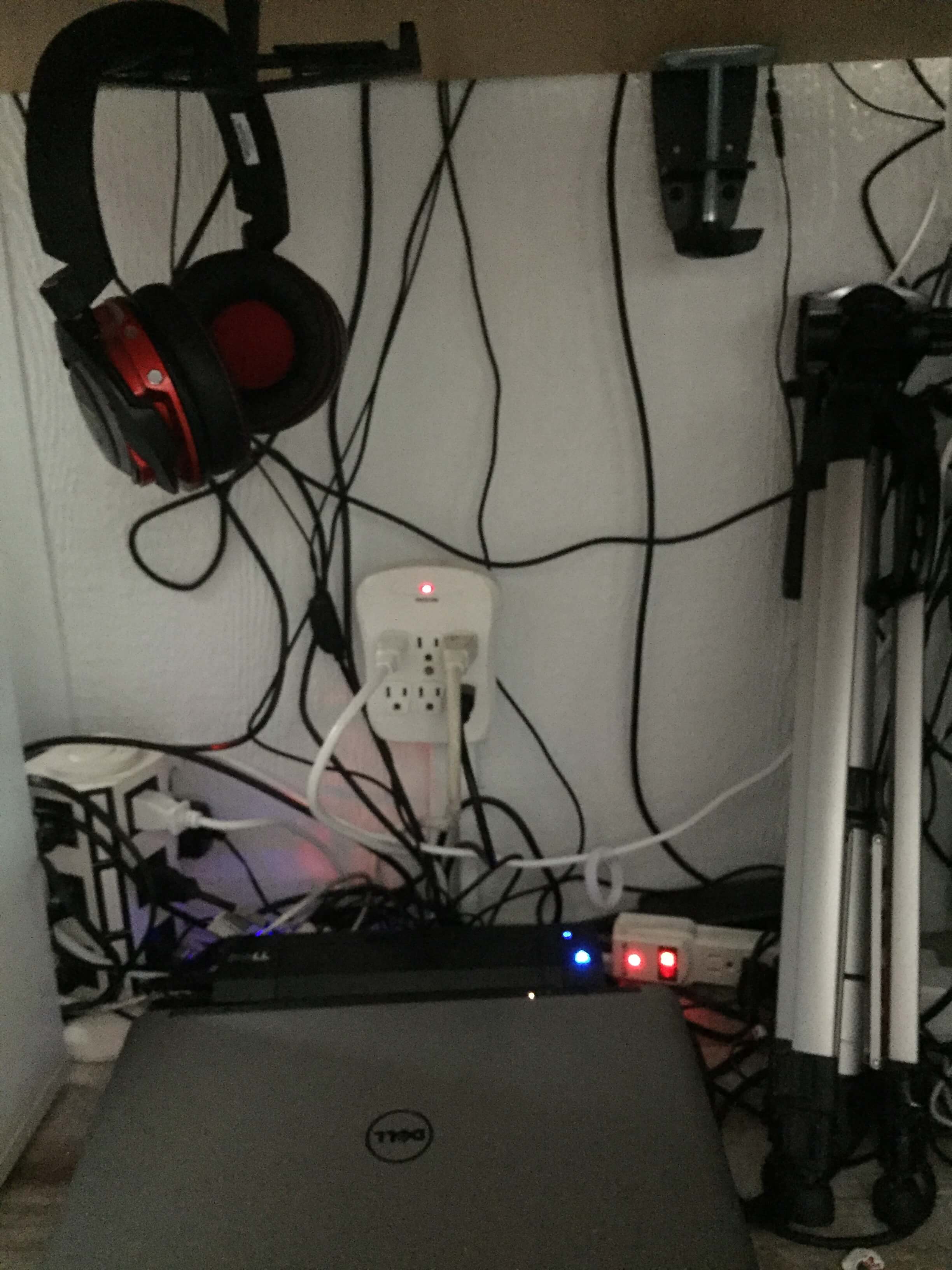 To get started, let me show you what under my desk looks like before I used the ELECOVER cord management kit.