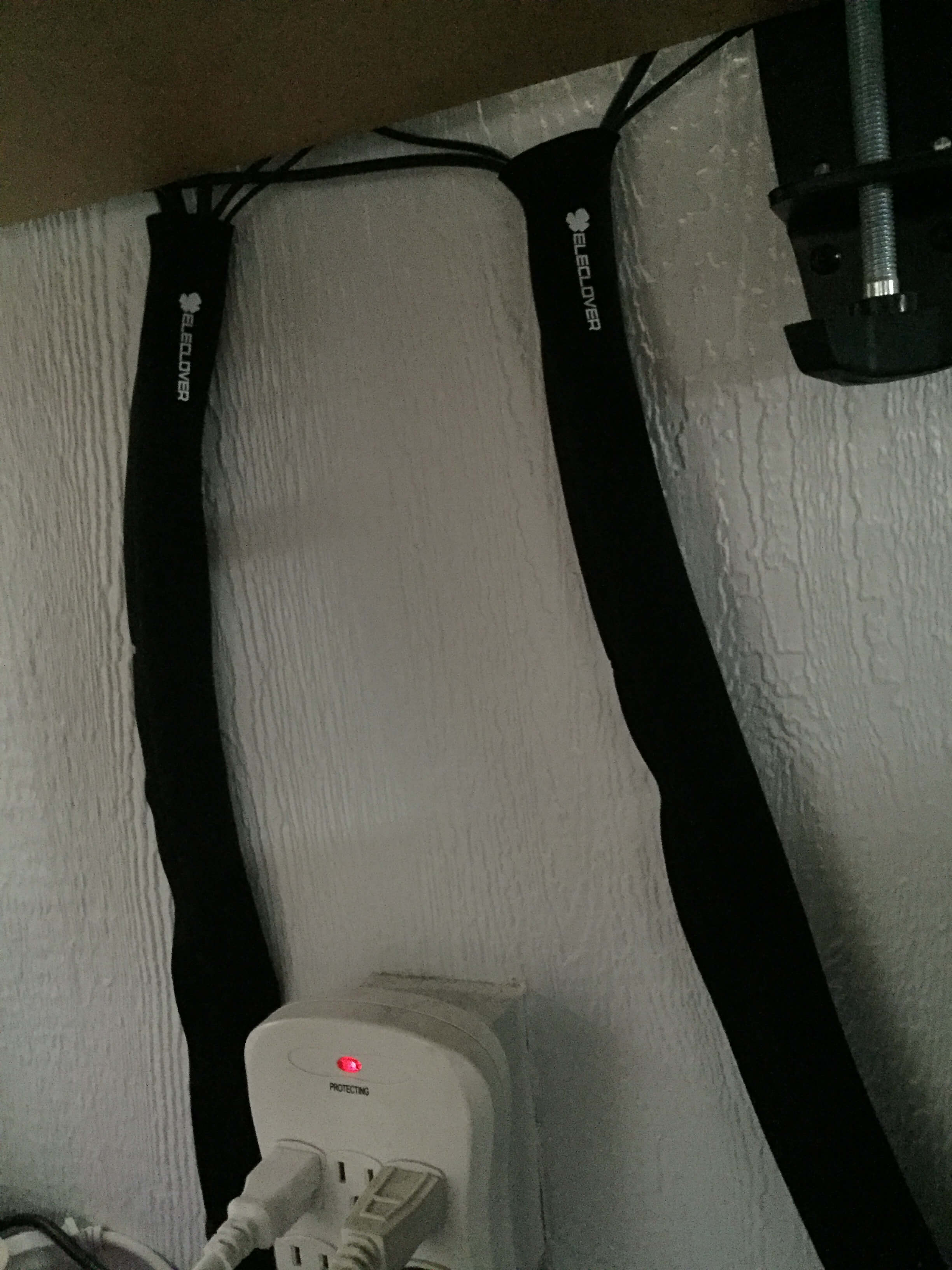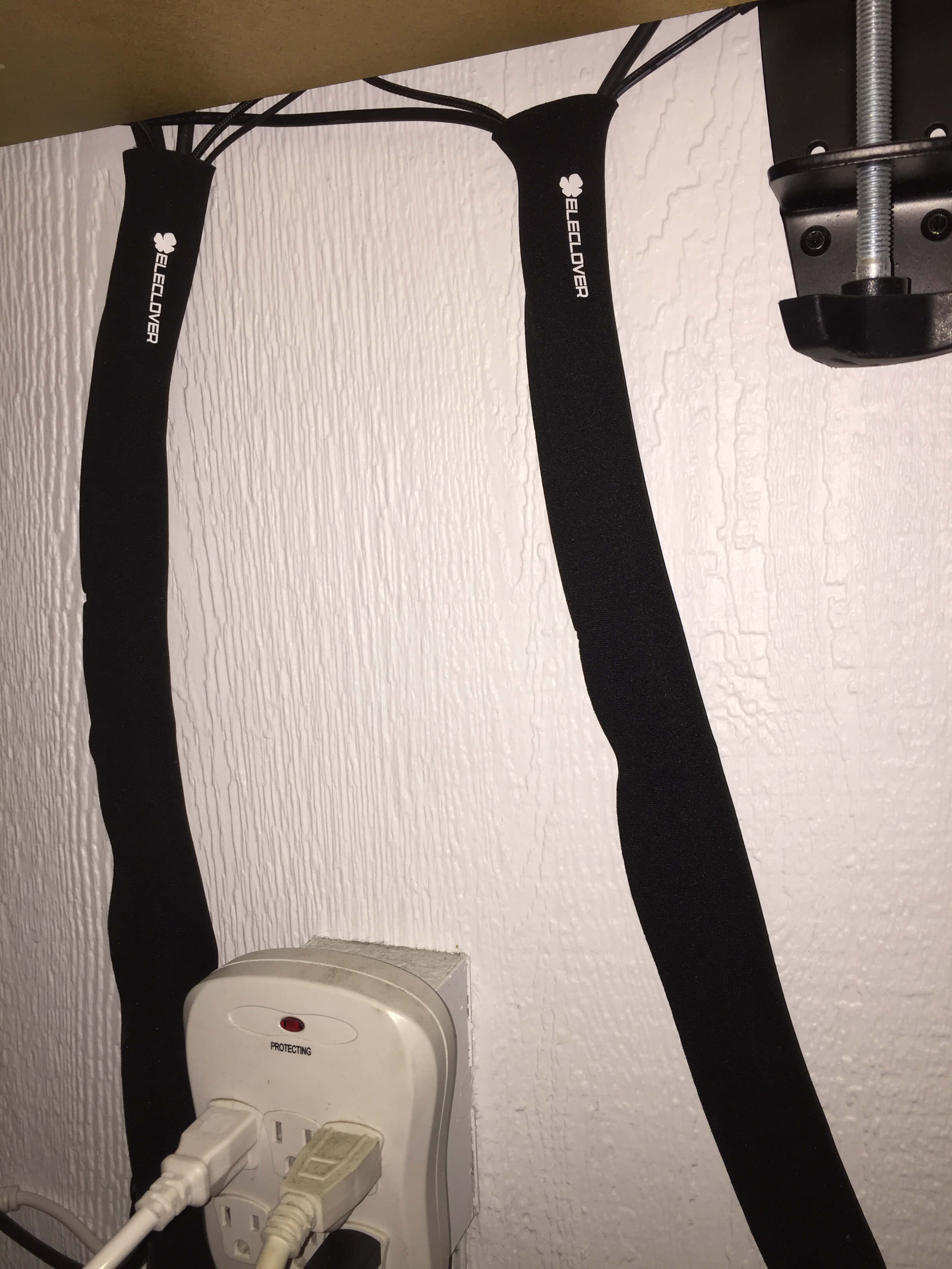 Eleclover Cable Sleeves (7)Now because I was under my desk, and there wasn’t a lot of wall space I didn’t really have a need to use the cable buttons on the wall, I used those in the living room for managing my wall mounted TV cables where it works better.  The velcro ties, of which you get 15 are fantastic for wrapping up cables you only use temporarily like USB cables, as well as keeping cables bundled together that run across long lengths on the ground like extension cords or Ethernet cables.
