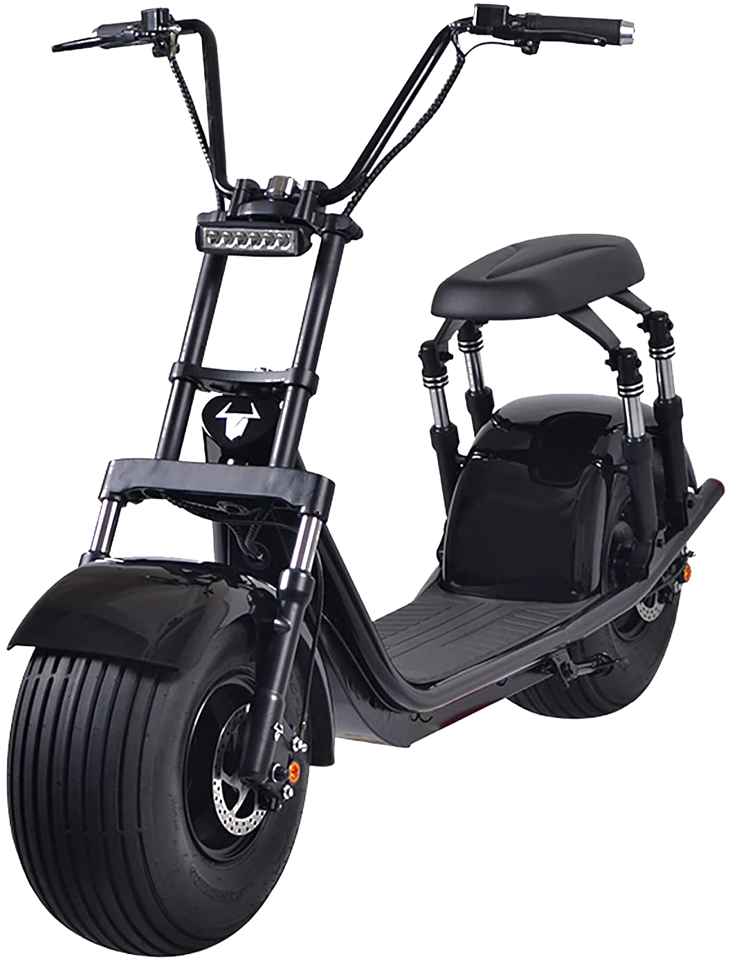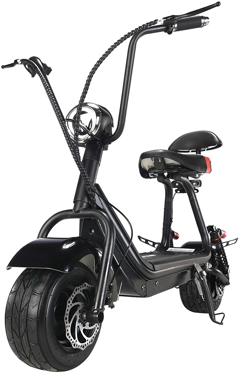 This scooter comes from Eahora, and it’s by far my personal favorite. It comes in a variety of colors ranging from cherry-red to navy blue, features one of the more comfortable looking saddles of the ones on our list, and a banging Harley design. The specs on this thing are also lovely, with an alloy steel frame, vacuum tubeless wheels, and a 2000w QS motor. Unlike the other scooters on our list, this thing is sporting an LG battery with a 60v 30ah rating. It’s also quick charging, with a 4-6 hour charge time when using its 4a charger. It features dual shock suspension, front, and rear hydraulic disk brakes, and just looks outright gorgeous. It reaches a max speed of 37mph with a cruising range of 40 miles off a single charge, perfect for a work commute or a small road trip.