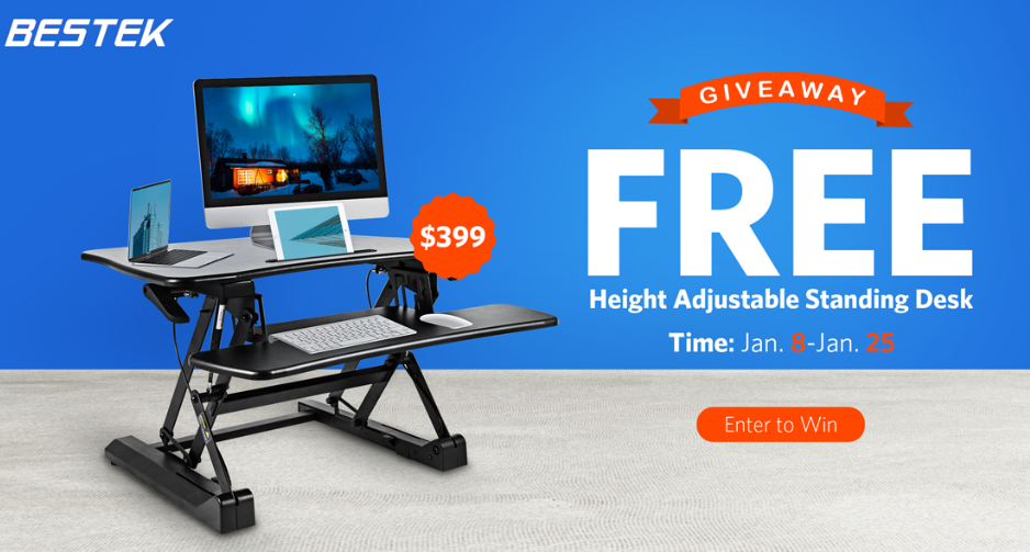 All you have to do is enter by joining their newsletter (fill out a form) and you are entered for a chance to win the Bestek Height Adjustable Standing Desk which has an ARV of $399.98. There will be 50 winners total and only 1 prize per winner. Per the giveaway rules the winners will be contacted via email on January 27th 2019.