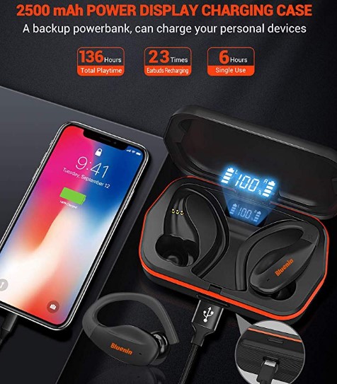 The charging case for the Earbuds themselves also doubles as an emergency power bank or external battery for your phone and with it’s 2500mAh capacity it can pretty much hold around 50% capacity of of most phones to help you charge out of a jam. The Bluenin earbuds themselves also have 6 hours of play time on a single use and can charge 23x on a single fully charged case.