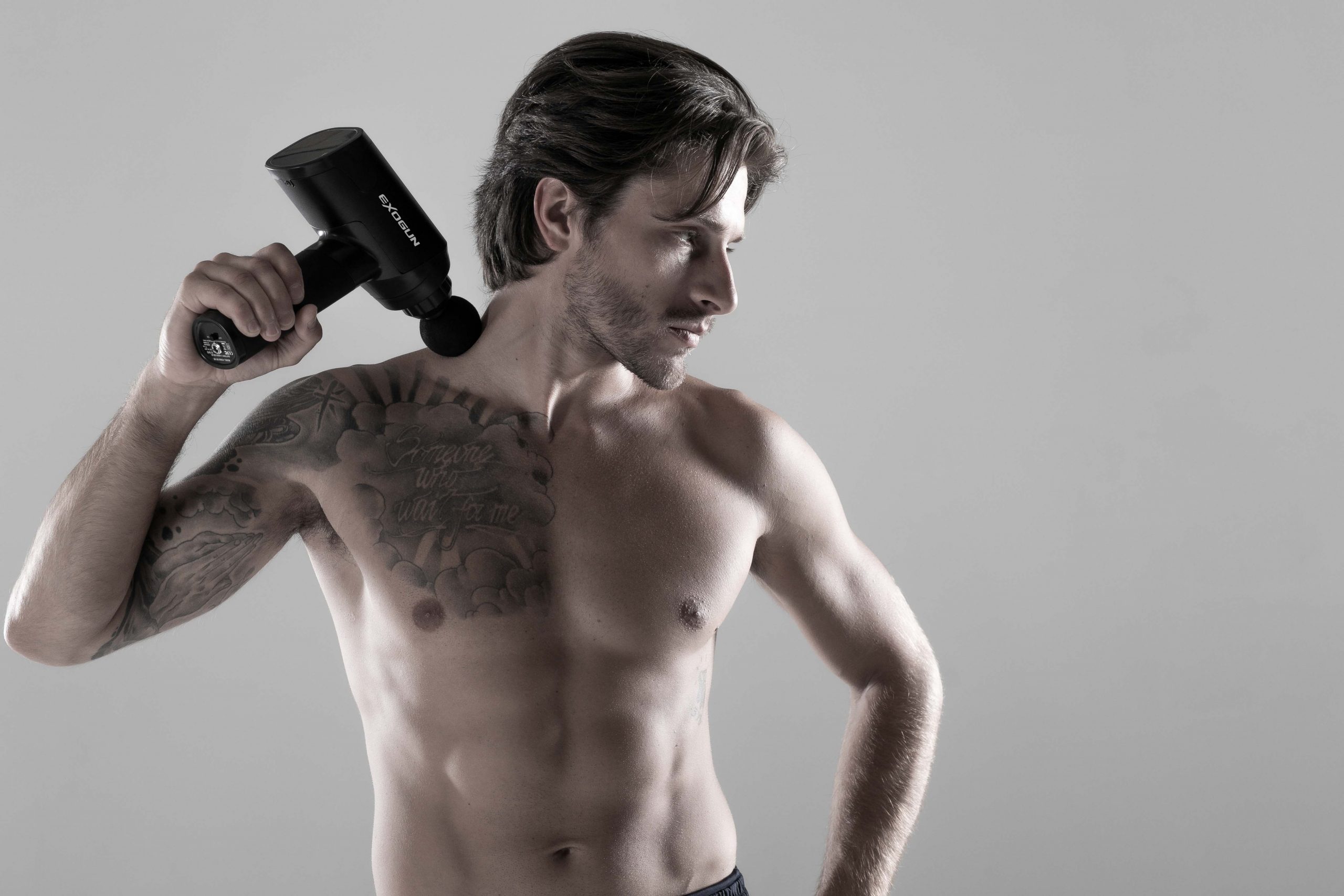ExoGun is a professional-grade percussive therapy treatment device trusted by experts and athletes to provide relief to the body. Percussive therapy works by penetrating soft muscle tissues, increasing blood flow to muscles, relieving tension, and reducing muscle pain. Delayed Onset Muscle Soreness (DOMS for short) is a condition that usually occurs after a workout and causes your body to ache for hours or even days. Using a massage gun such as ExoGun prevents DOMS and helps in faster recovery. Percussion massage also improves flexibility which results in much lesser injuries or soreness after a workout. Some of the other benefits are improved blood circulation and enhanced range of motion.