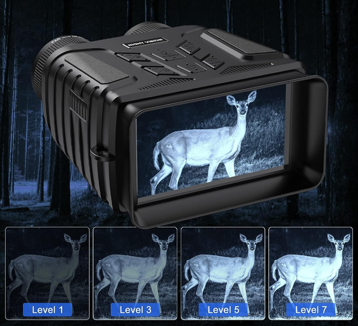 Night vision is another additional feature that will be of great help if you need to use binoculars in low-light conditions. You can choose between 7 night vision modes, so depending on how dark it is you can choose the lowest or highest level. Bozily binoculars allow you to take 4K videos and photos at 40MP (a 32GB SD card is included). The battery life is also incredible, these binoculars are equipped with a 4000mAh rechargeable battery, which means you can use them for up to 12 hours on a single charge (a USB-C charging cable is included). Videos and photos can be easily transferred via Wi-Fi connection.