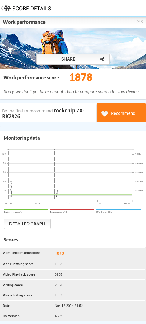 In order to get PCMark to run, I had to uninstall all of the software I had previously installed and then it finally worked.  It was again not the best score, but it did work and while not even meeting the minimum requirements.  I would think that you should be prompted when the tablet is out of space rather than just not working, that’s a problem in my book.  I am not sure if I could blame Chromo or Android for that issue, so I will leave it as an Android issue.