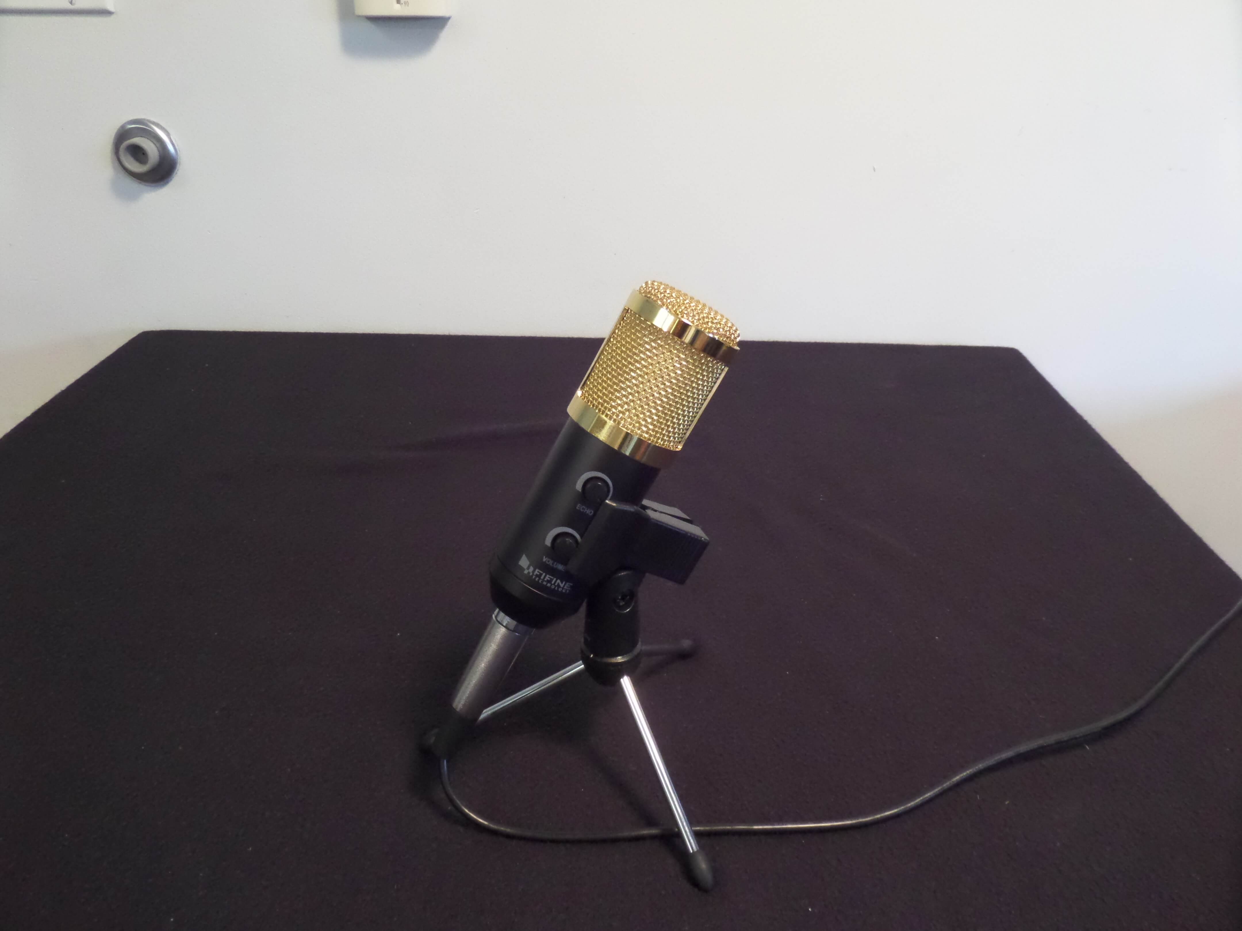 Although this is the first time I have used a Fifine desktop USB microphone, I will say it was easy to work with. Connecting was just that plug and play as mentioned. Only took a few slight adjustments and I was good to record. The extra long cord means you can place it just about anywhere. Would have loved to see or try another microphone stand due to the unstable clip when bumping the desk or microphone, but the one that comes with it works fair. I think for my use I would have liked a stand that comes down from a pivot arm, personally. The Fifine condenser microphone looks great on the desk or anywhere I set it. I loved the look without the windsock on. The gold colored mesh makes a statement that anyone would be proud present. The windsock hides that gold look. The shipping was fast and the product showed up with no issue. Even with the microphone stand being a little too small and slightly unsteady. I think for the price and for the way it works this is definitely a microphone anyone would be happy to add to their arsenal. I would recommend the Fifine USB microphone to anyone.