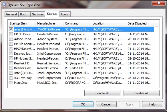 - Now, except the programs which you definitely need, like your Antivirus Program, maybe a Backup Utility etc. UNSELECT all other programs from the list.