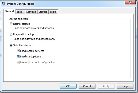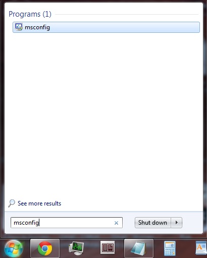 - In the Start Menu Search Box type: “msconfig” and open it.