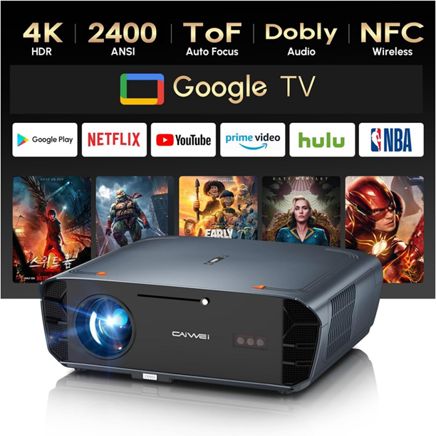 As mentioned before, the CAIWEI projector features Google TV, which grants it native access to streaming apps like Netflix, YouTube, Disney+, Prime Video, Hulu, and more, without needing to add a separate TV Stick. This means unlimited access to more than 10,000 movies and series available on those streaming apps.