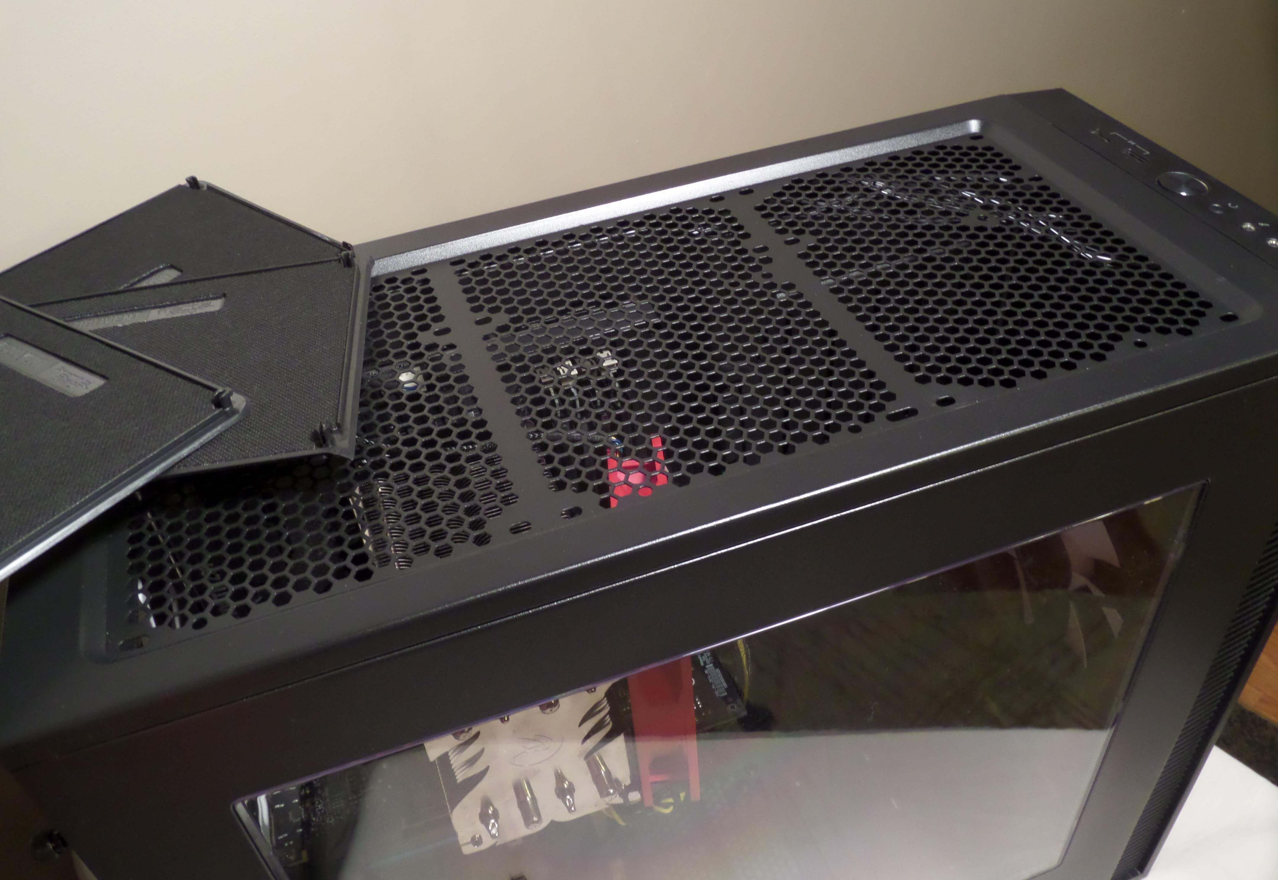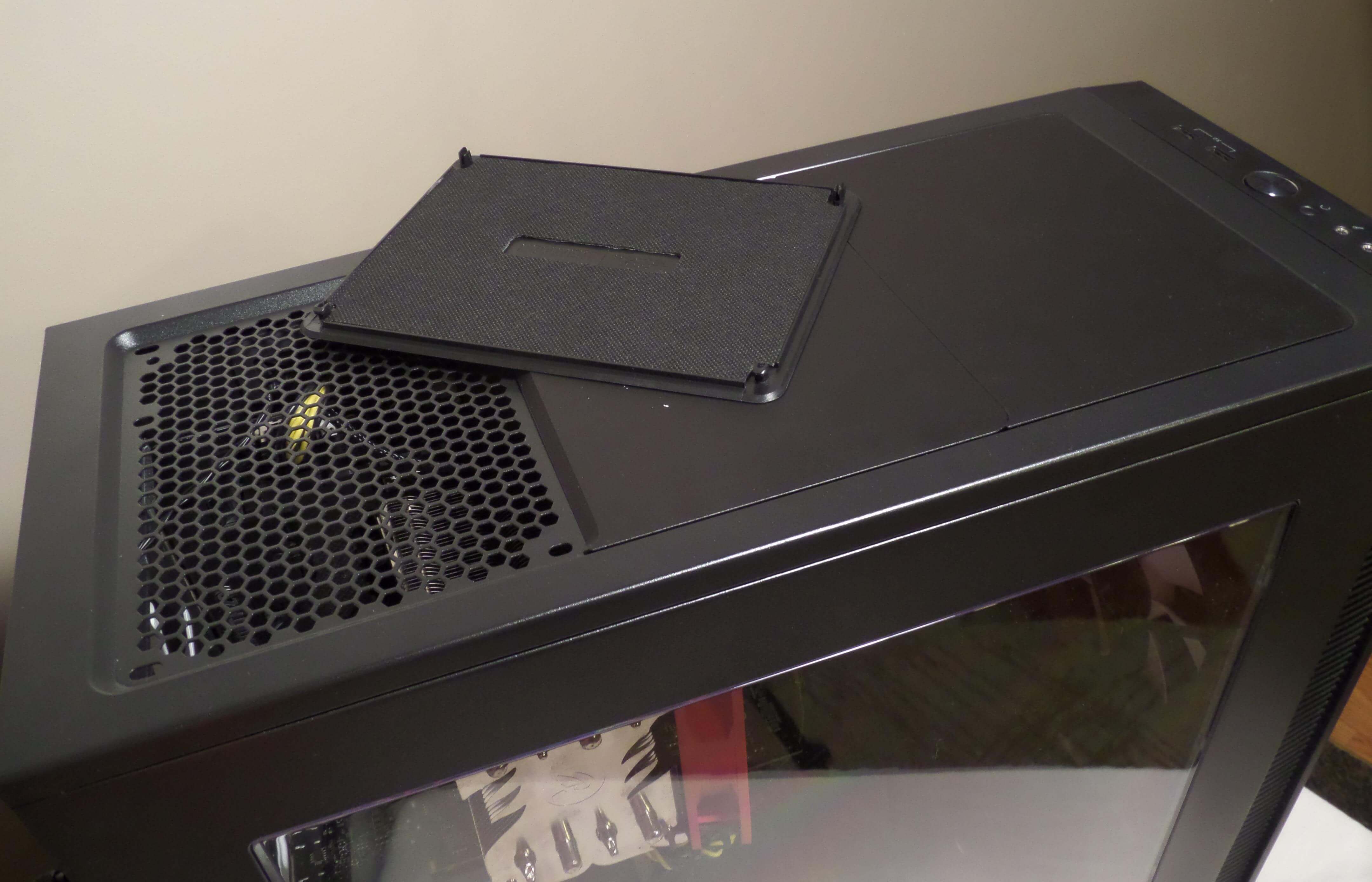 These ModuVent panels block fan vents for 3 fans or a liquid cooling unit of course for better cooling, here’s a pic of 1 x panel removed.