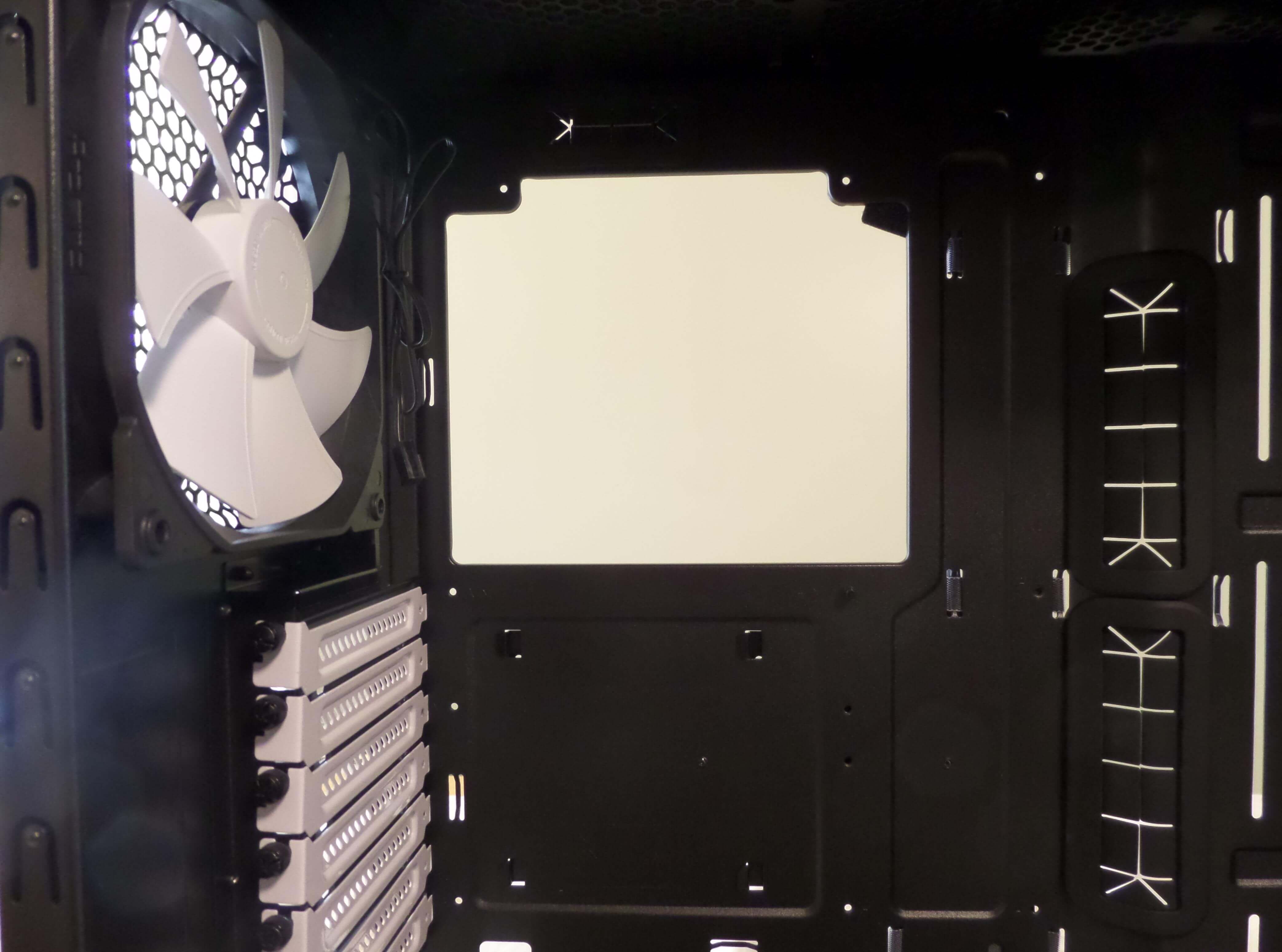 Under that, we find the front 140mm fan along with 2 additional spots for 140mm fans, though that fan can be removed and 3 x 120mm fans can be installed instead.